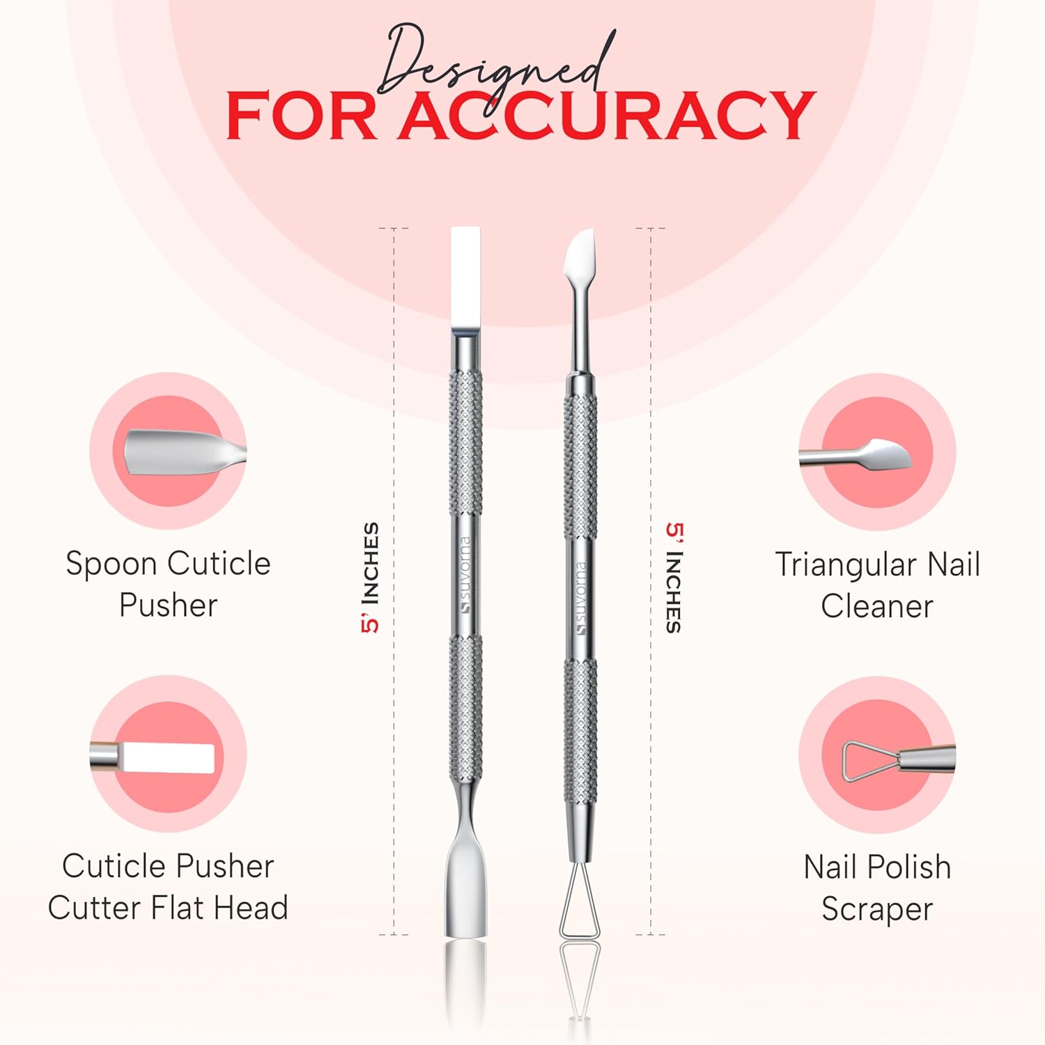 - ๐ฉ๐ปโ๐ผ American Female-Owned Brand โ Hand-Finished Excellence: Suvorna is a proudly American, female-owned brand. Unlike others sourcing from China, each cuticle trimmer is hand-finished in our own manufacturing units by skilled artisans using high carbon stainless steel. Ergonomically crafted and hand-polished for precision and durability, our cuticle nippers deliver luxury-level performance with a lifetime warranty against manufacturing defects.
