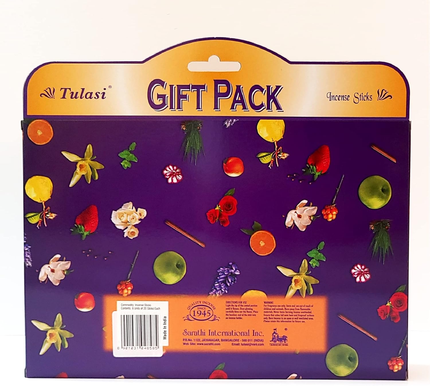 - SET INCLUDES: 120 incense sticks (6 x 20Pc). This Tulasi Incense Stick Gift Pack includes 6 different fragrances boxes, each box contains 20 sticks | Sandalwood, Red Rose, Lavender, Green Tea, Vanilla, Forest