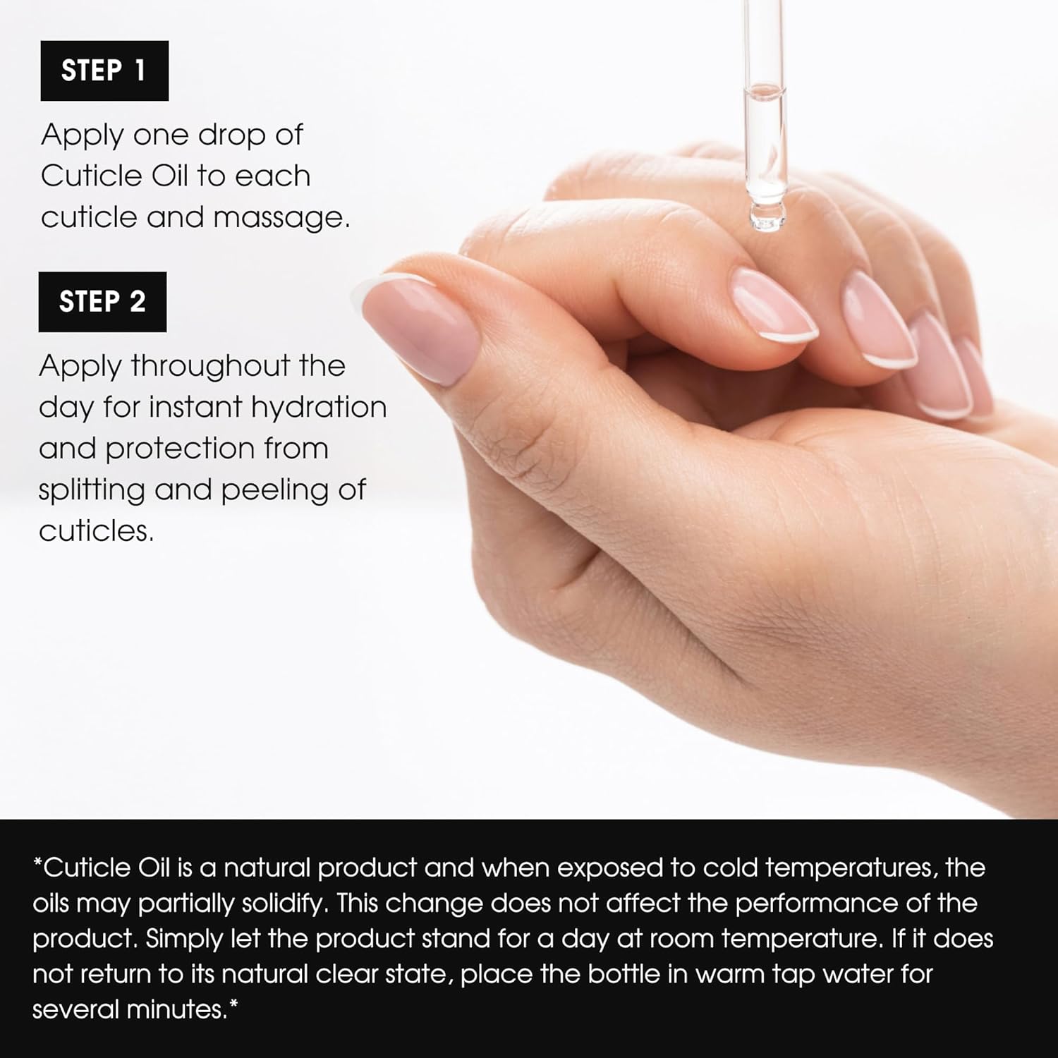 - HYDRATING CUTICLE CARE: Cuticle Oil is a natural product and when exposed to cold temperatures, the oils may partially solidify. This change does not affect the performance of the product.