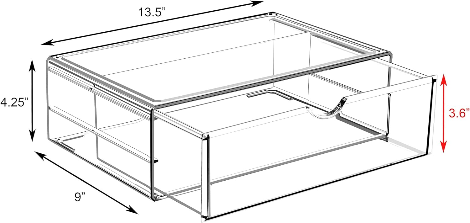 - Design Details: The Sorbus Acrylic Makeup Drawer Organizer helps reduce clutter, gain space, and save time getting ready - Clear drawers slide open smoothly with easy-to-grip scoop handles - Measures approximately 13.5β L x 4.25β H x 8.75β W