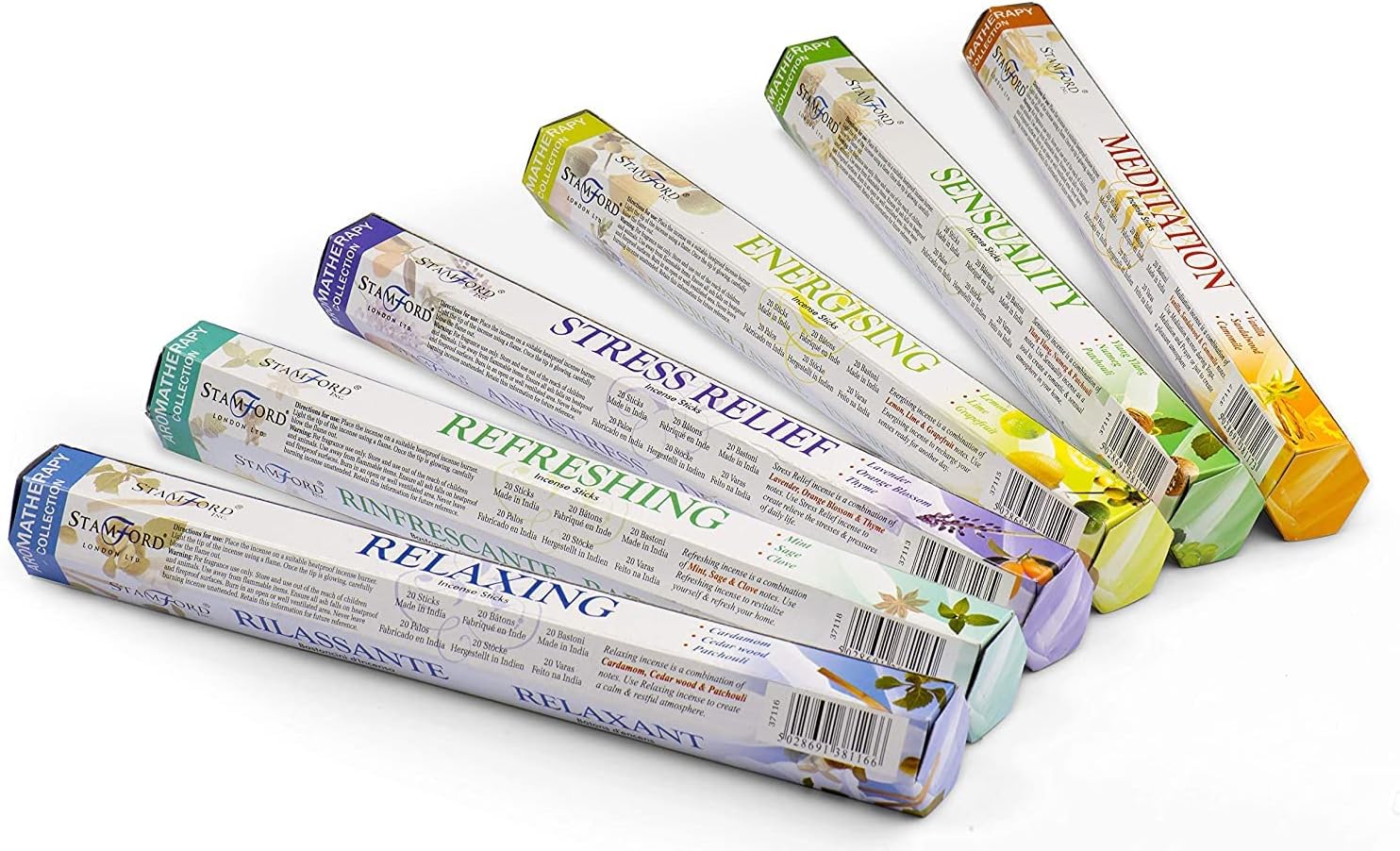 120 Sticks of Stamford Premium Aromatherapy Hex Range Incense Sticks - Relaxing, Stress Relief, Meditation, Refreshing, Sensuality & Energising Incense Gift Pack. by Stamford