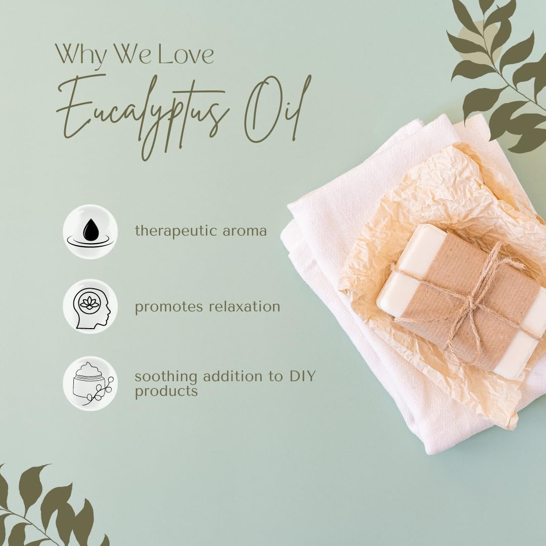 - πΏ 100% Pure Eucalyptus Oil β Undiluted, steam-distilled, and free from additives or fillers.