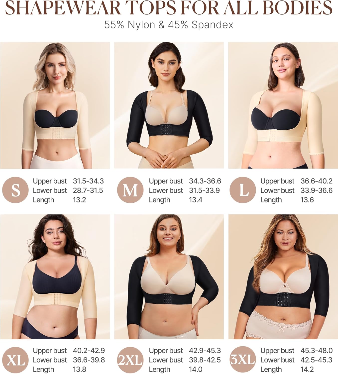 • WORK AS POSTURE CORRECTOR. This slimming shapewear for women firm compression of upper flabby arms, pulls shoulders back for great posture, improve your posture and humpback, makes you more and more confident.