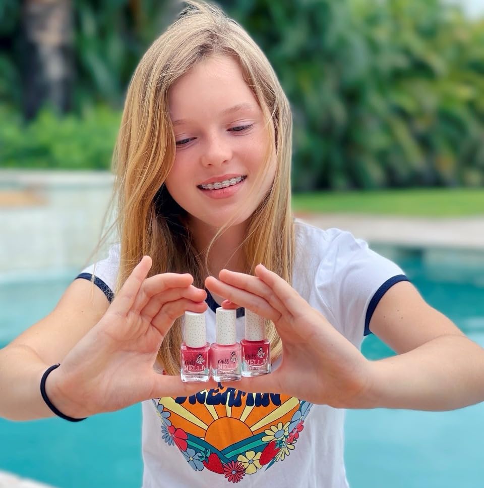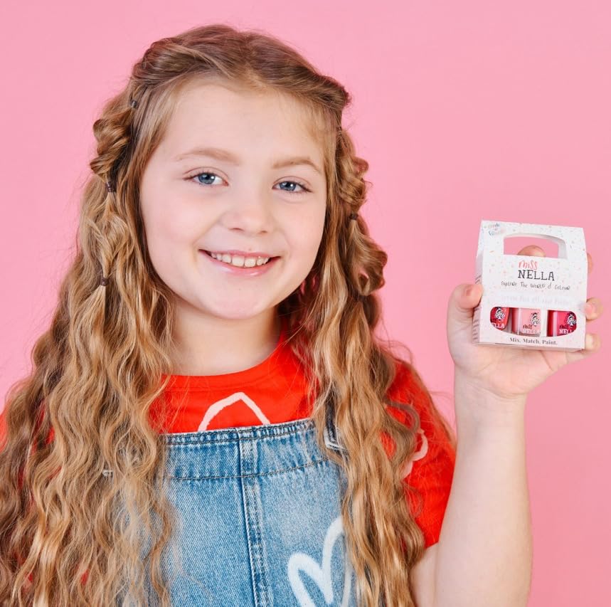 - GREAT SHADES: All kids are drawn to bright and happy colours, which is why Miss Nellaβs nail polishes comes in a great range of shades with fun names that you can never forget: Sugar hugs (glittery see through pink), Cheeky Bunny (light shimmery pink) & Tickle me (dark shimmery pink)