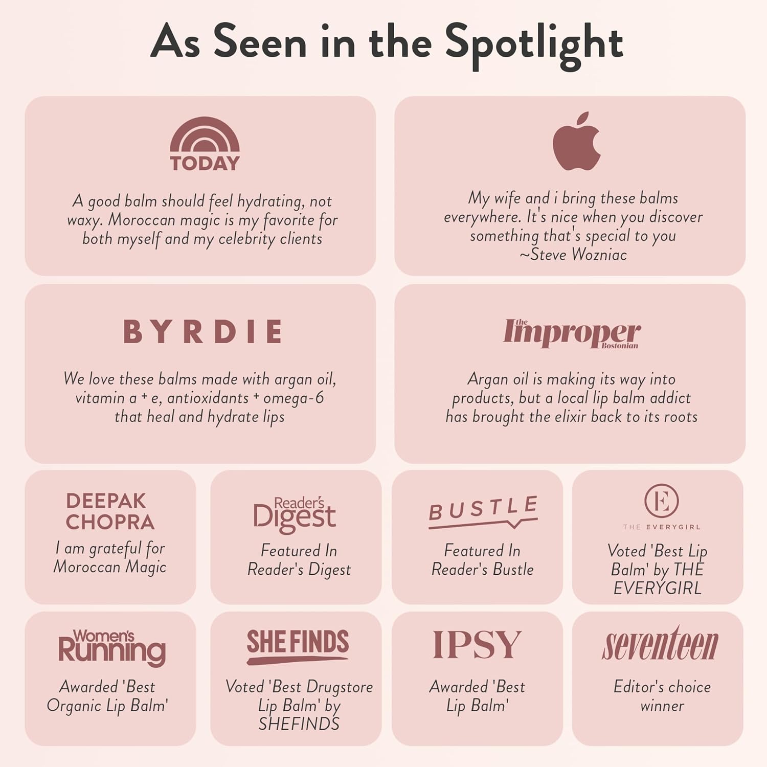 - Non-Toxic Formula: Moroccan Magic prioritizes your well-being with a non-toxic lip balm formula, free from harmful chemicals and artificial additives. This formula aligns with 100% USDA-certified organic standards, assuring you of its purity and safety. You can confidently incorporate it into your daily lip care routine, knowing it's gentle and safe for your lips, even if you have sensitive skin.