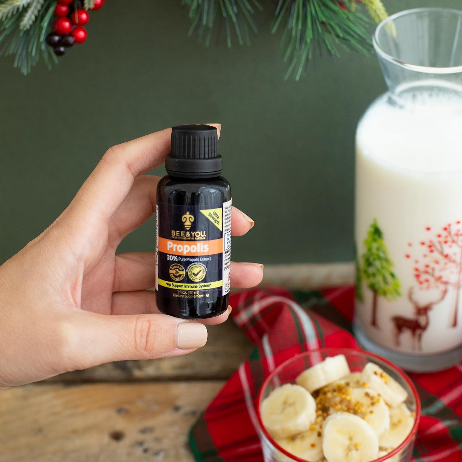 Bee and You Propolis Liquid Extract Drops, 30% Propolis, Ultra Pure, Immune Support Supplement, Sore Throat, Allergy Relief, Respiratory, Antioxidants, Keto, Paleo, Gluten-Free, 1 Fl Oz