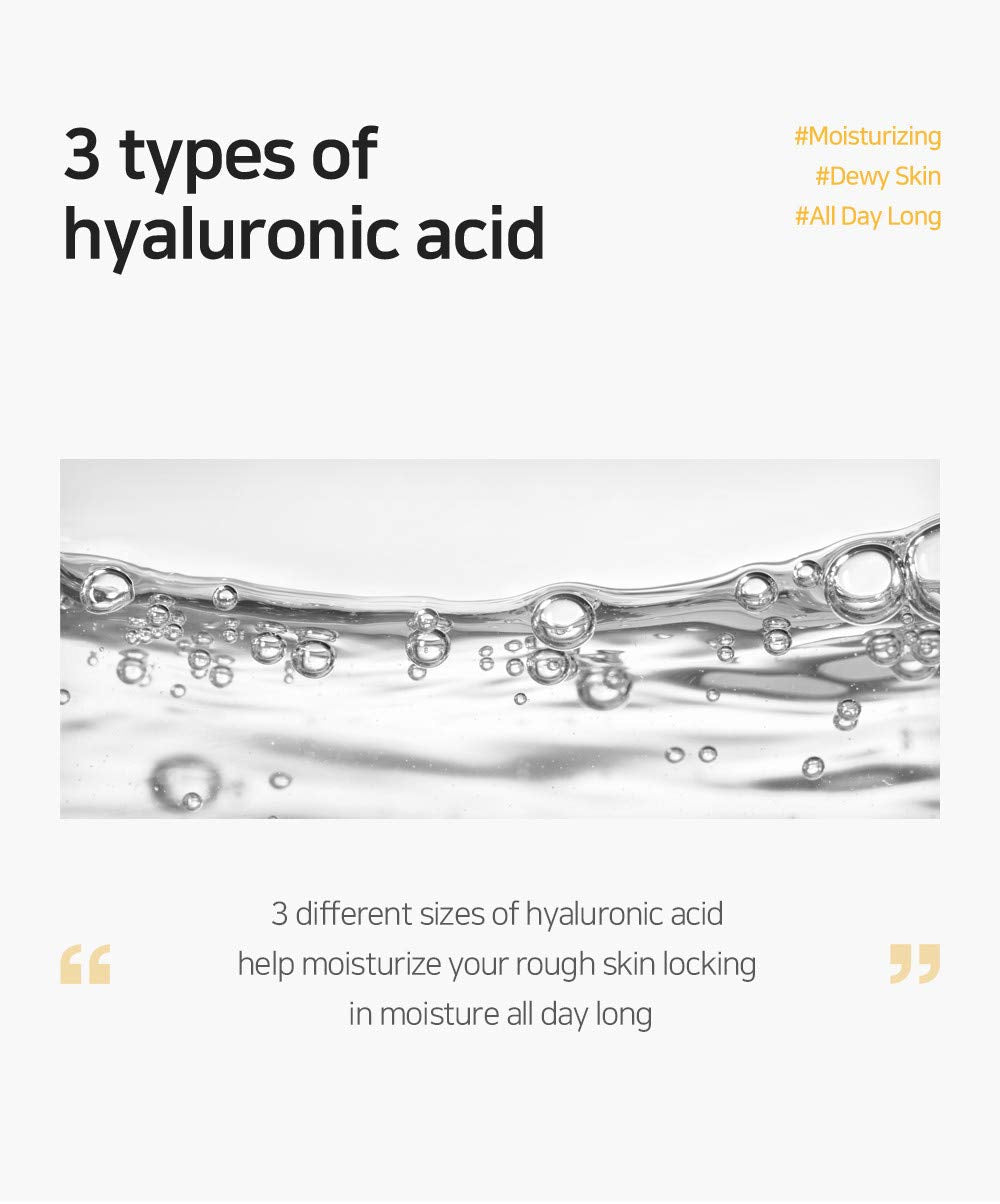 • 3 HYALURONIC ACIDS: 3 layers of hyaluronic acid replenishes moisture deep into the skin, prevents moisture loss from the skin surface, and forms a moisture barrier to hydrate and protect your skin.