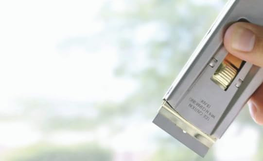 - For General Purpose & Specialized Cutting: Standard Blade for Easy Cutting of Paper, Plastic, Boxes, Tapes and Crafts - Industrial Razor Blade Suitable for Removing Labels, Decals, Stickers, Paint, Glue, Gunk from Glass, Walls, Doors, Floors and other surfaces