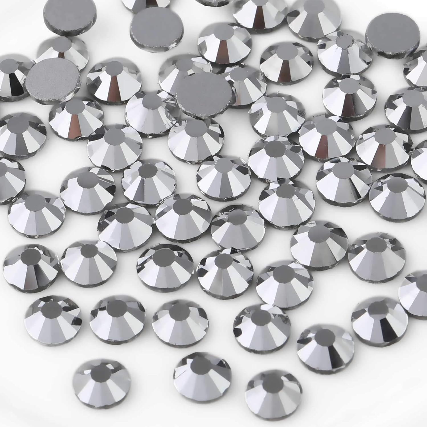 beadsland Flat Back Crystal Rhinestones Round Gems for Nail Art and Craft Glue Fix,Silver Hematite (2.7-2.8mm) SS10/1440pcs