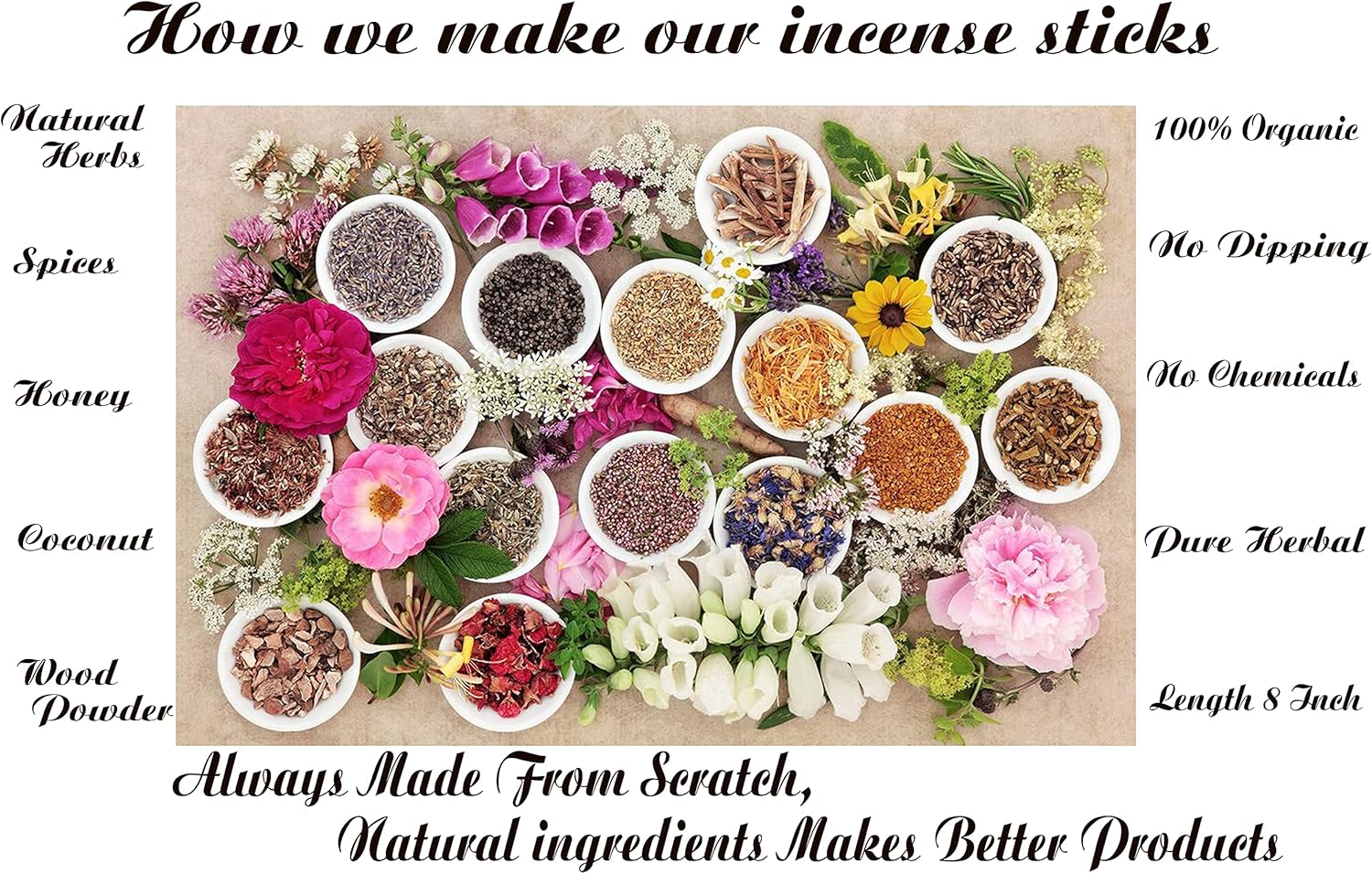 - π 100% NATURAL -Natural incense Sticks completely handmade MADE FROM SCRATCH by blending natural resins, Herbs, Spices with aromatic wood powders, charred coconut powder fragrant oils and honey. No Dipping in Toxic Chemicals