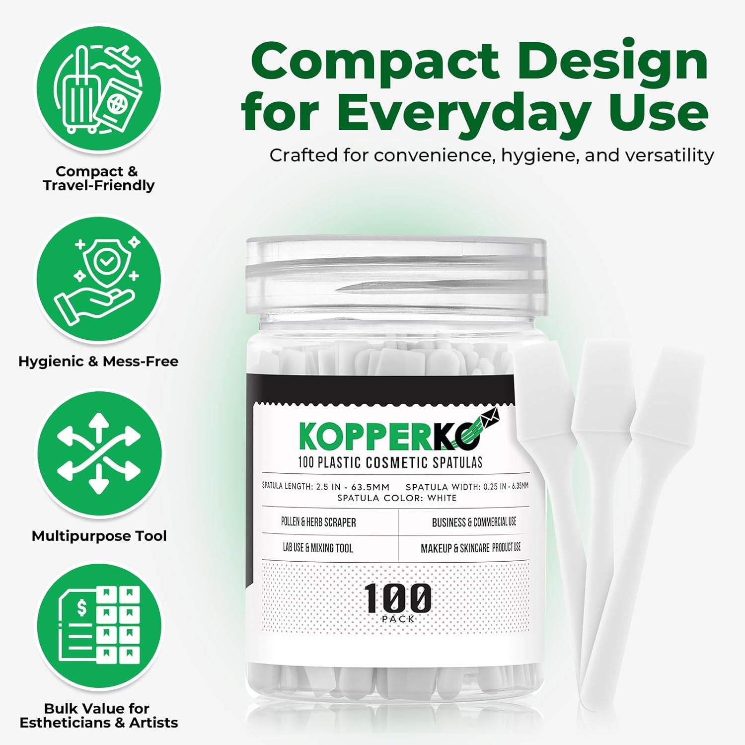 - Personal & Commercial Use: These 2.5" spatulas are perfect for essential oils, face masks, creams, or lab samples. Ideal for moving large quantities of wholesale or homemade lotions, gels, or serums, these spatulas are professional, and presentable