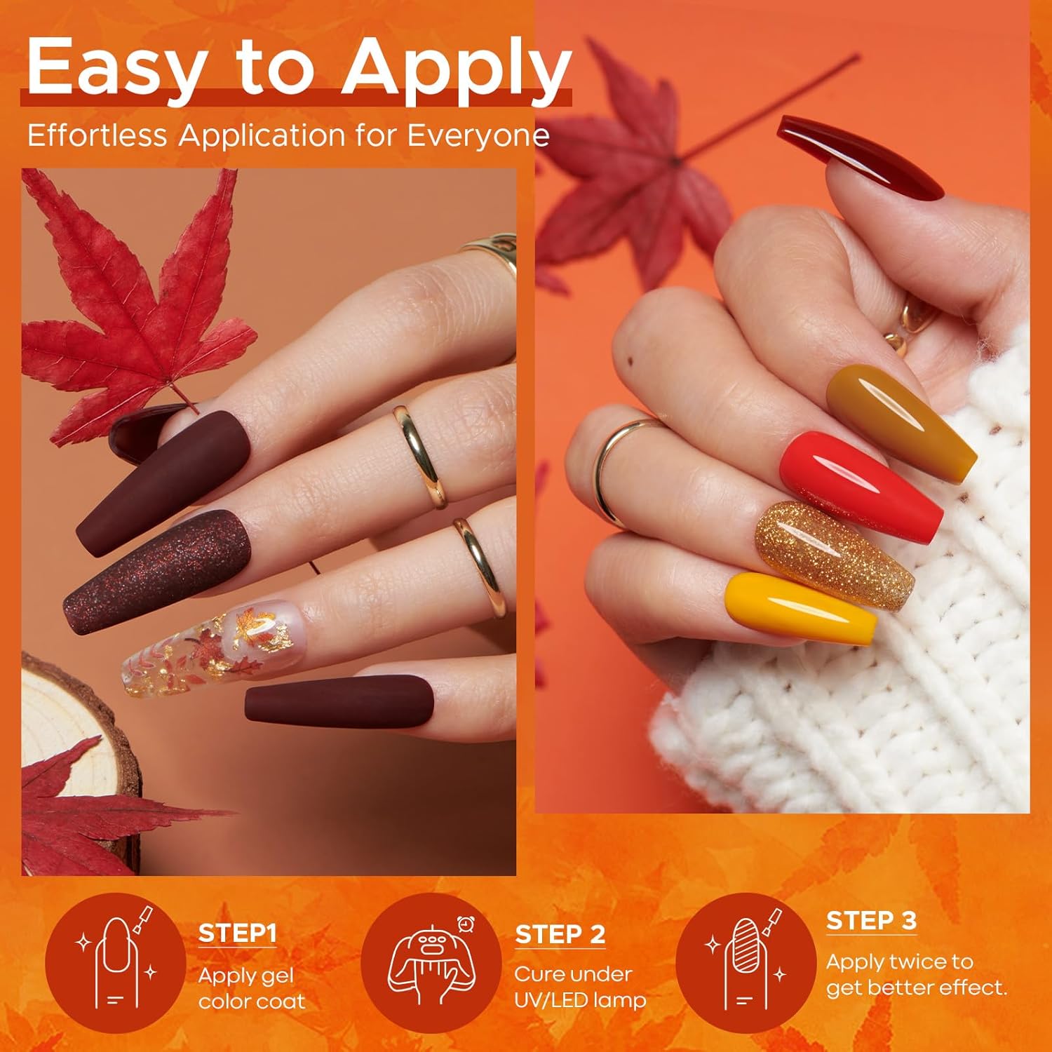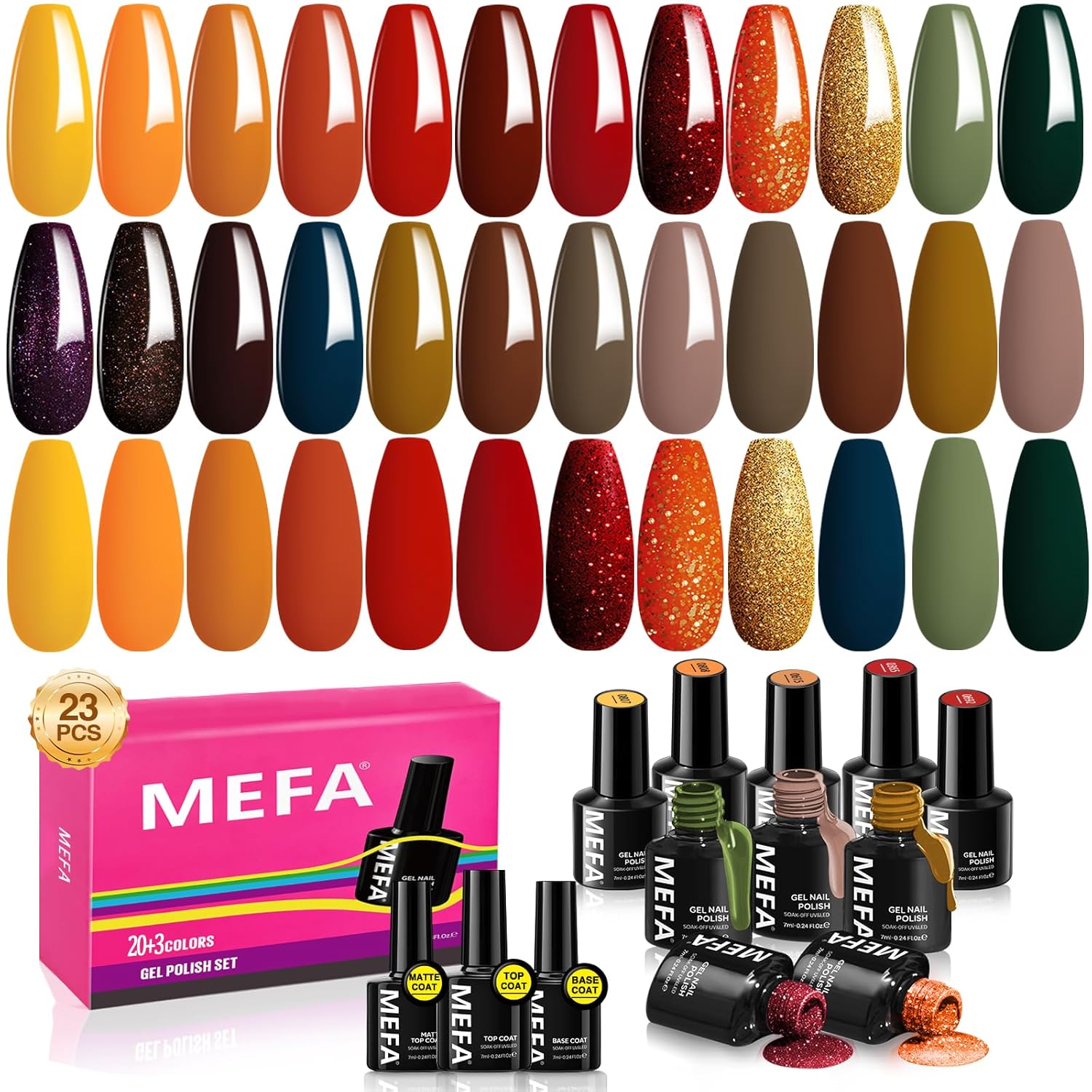 MEFA Fall Gel Nail Polish Set, 23 Colors Brown Orange Nail Polish Set Gold Glitter Yellow Nail Polish Soak Off Red Shimmer Gel Nail Gifts for Women Girl DIY Salon Home Manicure