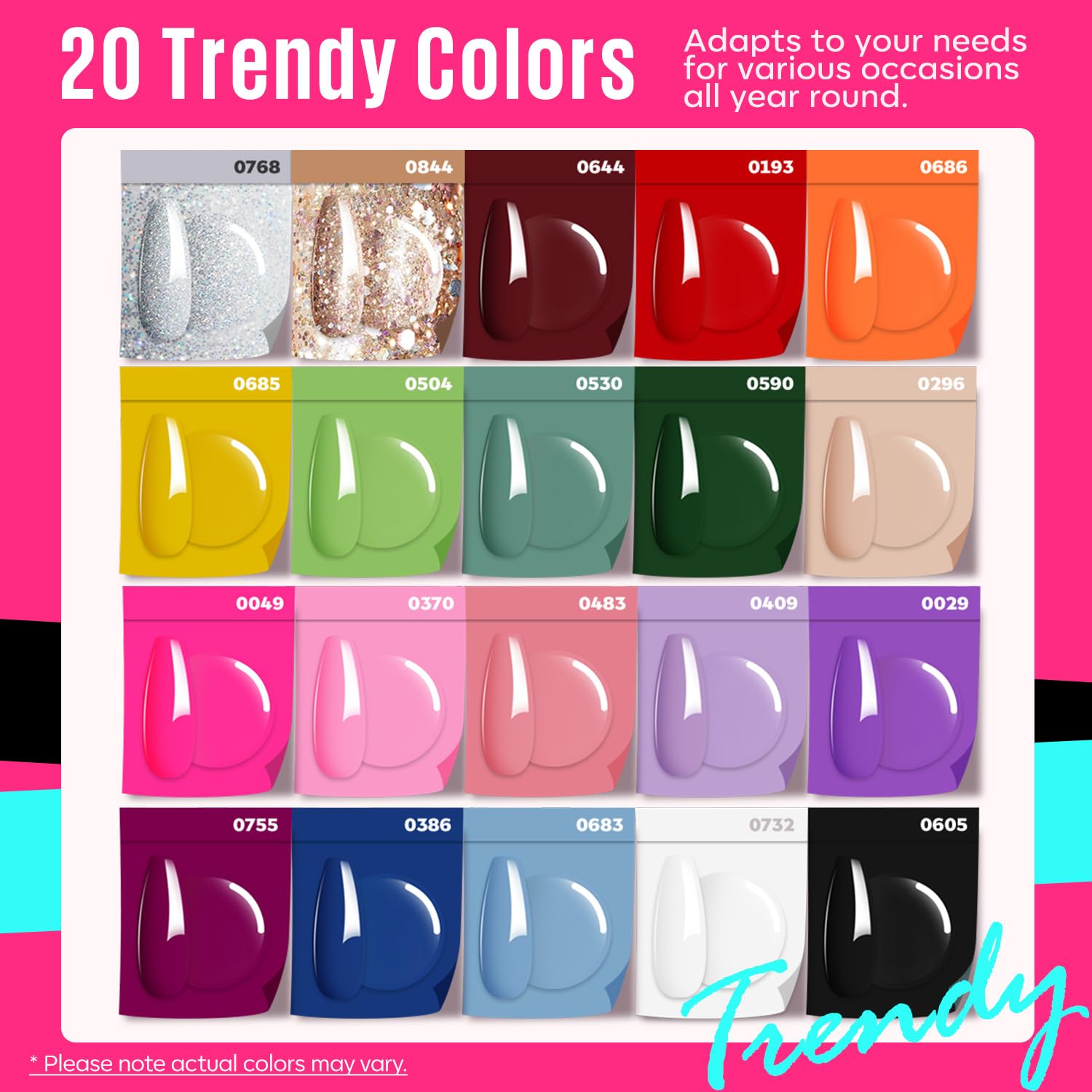 - Iconic and Trendsetting Colors: MEFAโs 2025-2026 collection offers 20 modern shades for any occasion. Includes popular colors like pink, glitter, purple, nude, skin tones, red, black, blue, purple, brown, and sparkle gel. Enjoy effortless color selection