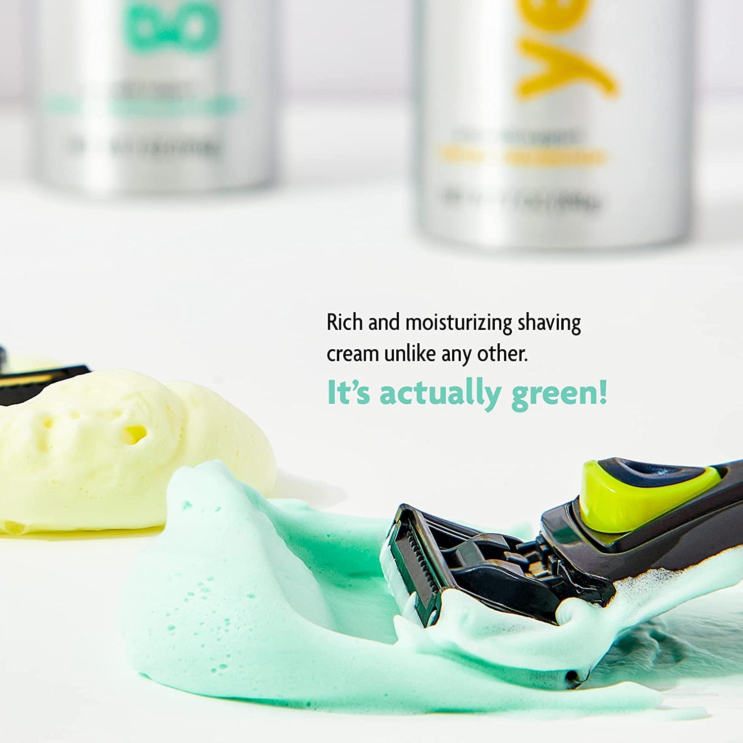 - Going Green is Easy - Who says shaving cream can't change the world? This rich and moisturizing shaving creams is unlike any other—it is actually green! Just the sight of it will brighten your day. This is a shaving cream sensitive skin care users will appreciate, as well as a shaving cream men and women can both enjoy using.