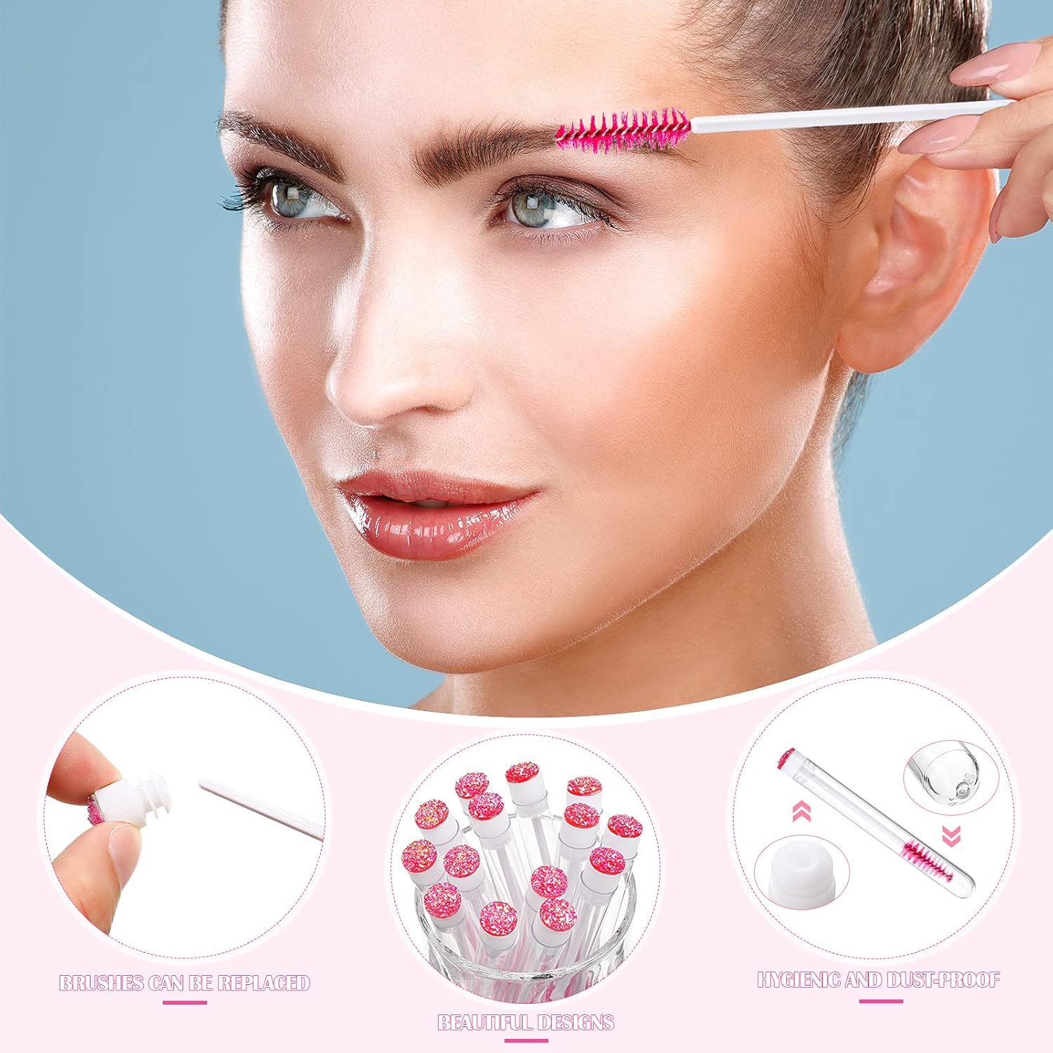 - Clean: put the eyelash sticks in a transparent plastic tube to prevent contact with dust and keep the brush in good condition for a long time; The eyelash brush can be fixed on the tube lid, no worry about loosing or losting, and the brushes can be replaced for long time use