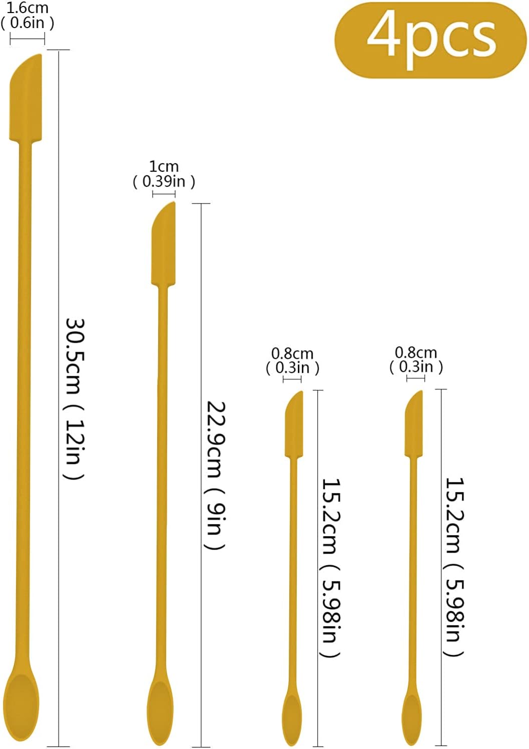 Mini Spatula Silicone Spatula Set - 4pcs Small Makeup Scrapers for Cosmetics, Reusable Beauty Tiny Tools, Thin Jar Scraper, Get the Last of the Makeup Out of the Bottle(Yellow)