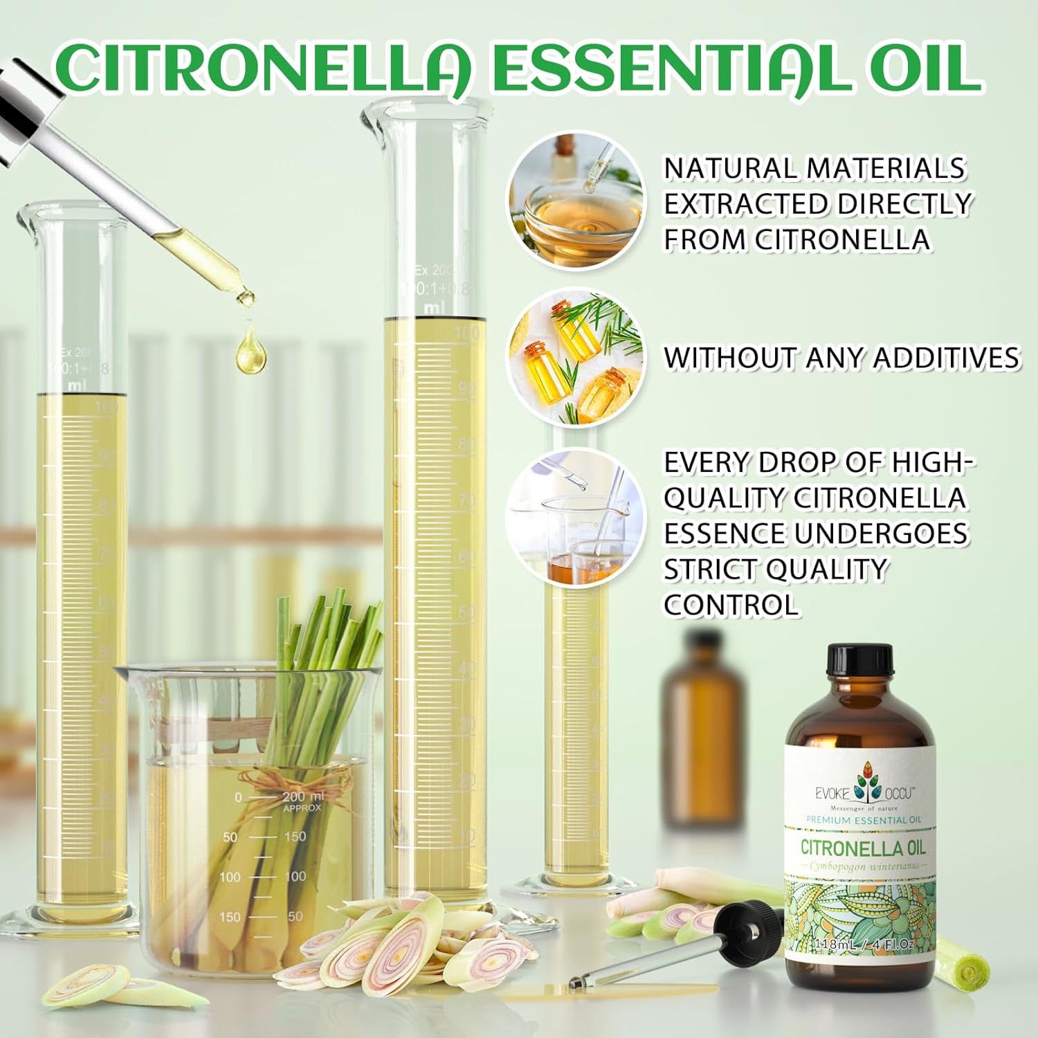 EVOKE OCCU Citronella Oil for Cleaning, Air Freshening, Add to Spray and Diffuser - 4 Fl Oz