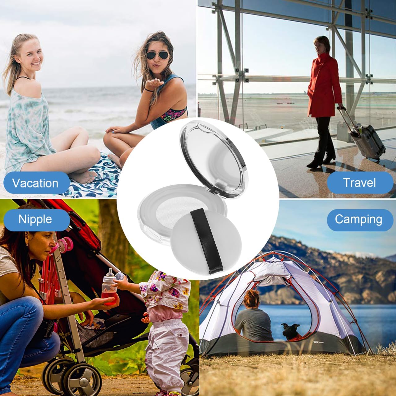- Portable design: This powder container with puff adopts a portable design, which is convenient for you to carry anytime and anywhere, so that you can maintain a makeup look when you travel or go out