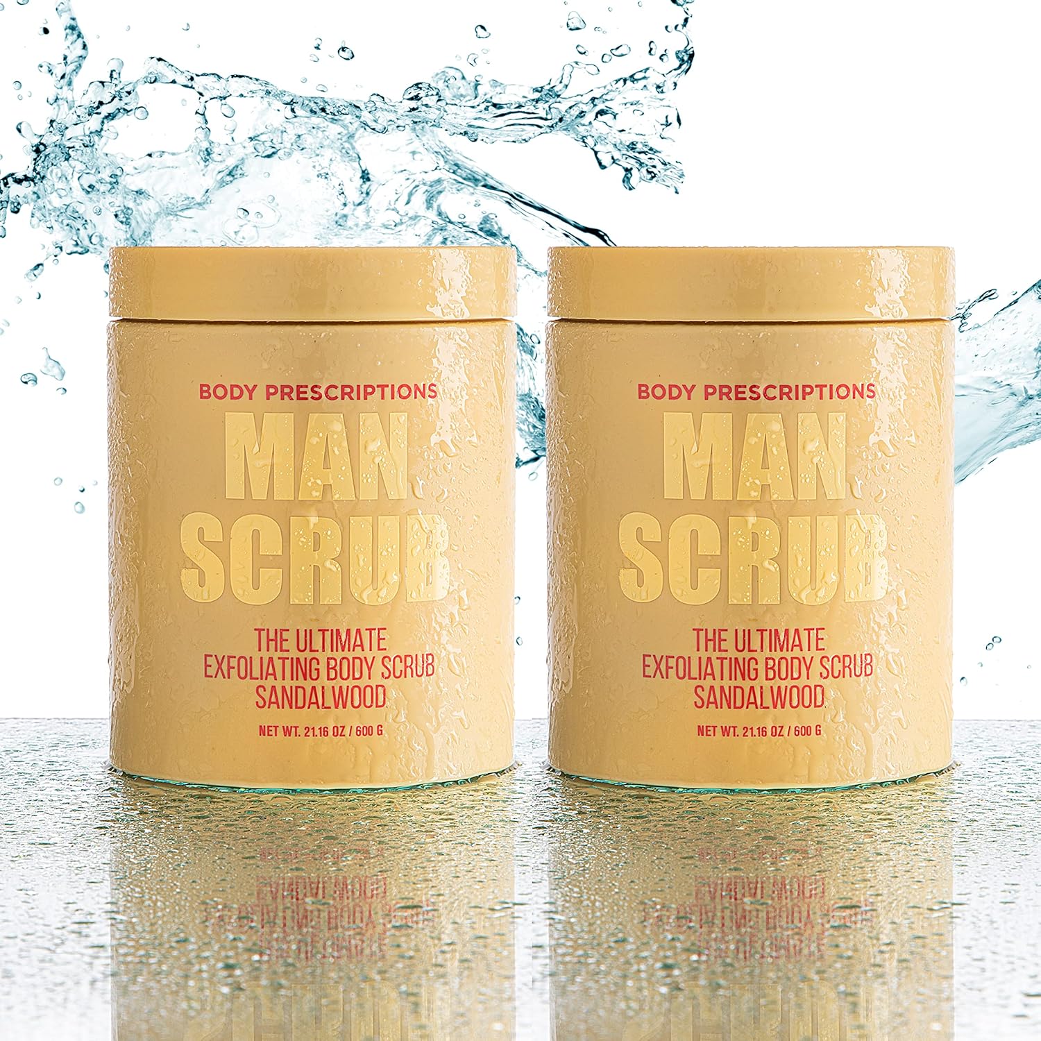 - RELAX + REFRESH: Delight your senses and relax at home with this 2 pack, 21.06 oz each ultimate exfoliating body scrub from body prescriptions. The “Man Scrub” comes in a largejar with an easy-to-use twist off top.