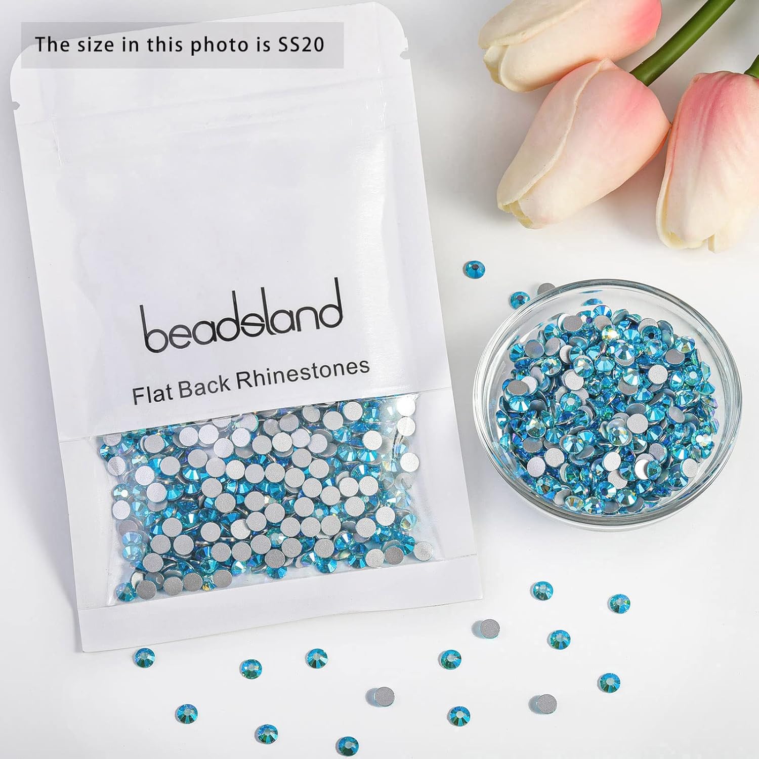 Beadsland 1440 Pieces Flat Back Crystal Rhinestones Round Gems,Aquamarine AB,SS20,4.6-4.8mm