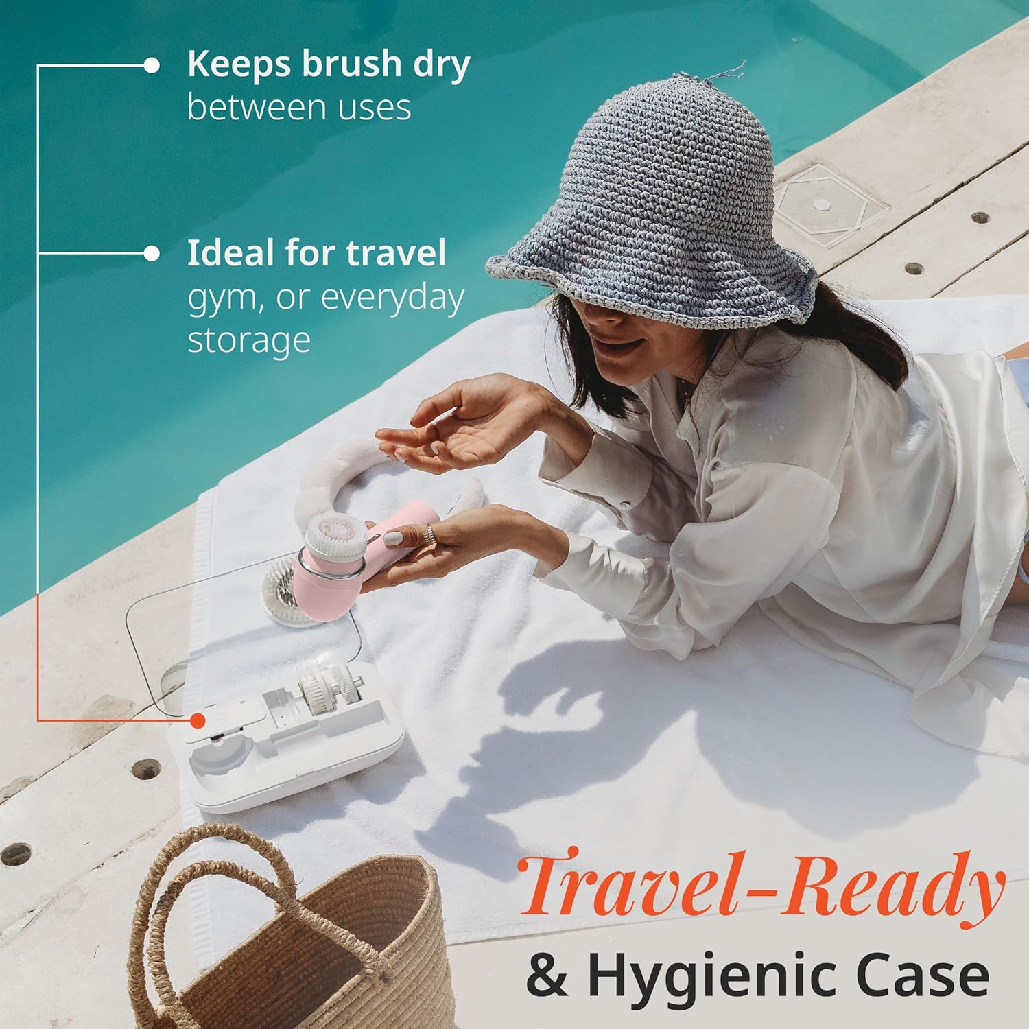 Vanity Planet Raedia 2.0 Facial Cleansing Brush, 4 Interchangeable Brush Heads, Pink - Daily Cleansing Face Exfoliator for Glowing & Acne Prone Skin - Lightweight Silicone Water-Resistant Body Brush