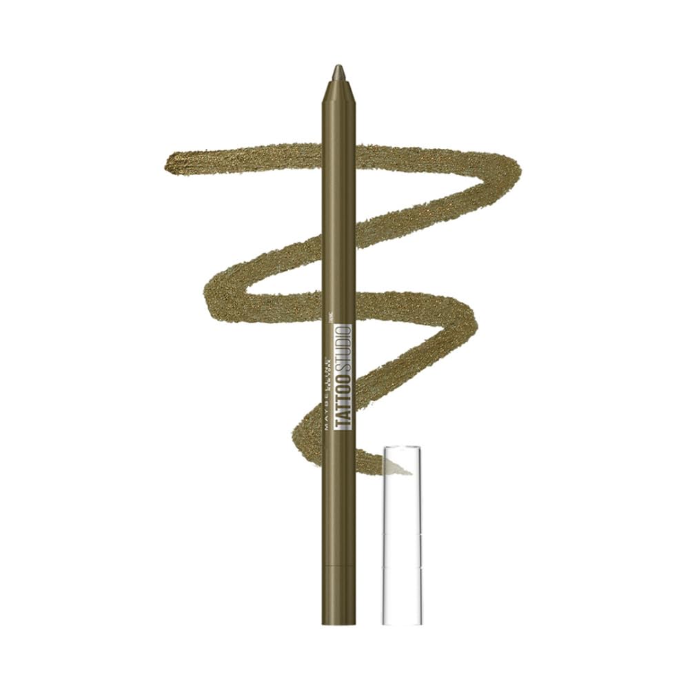 MAYBELLINE New York Tattoo Studio Long-Lasting Sharpenable Eyeliner Pencil, Glide on Smooth Gel Pigments with 36 Hour Wear, Waterproof Emerald Lights 0.04 oz