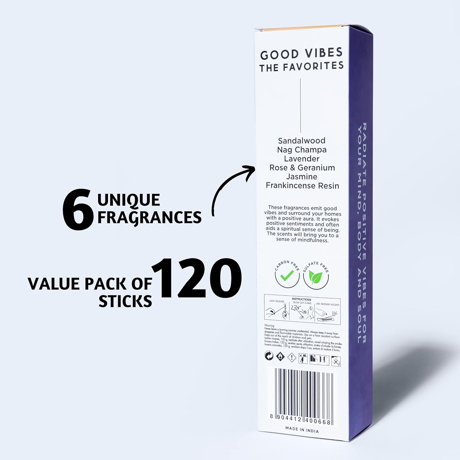 - Long-Lasting Value Pack β Each stick burns for up to 45 minutes, delivering hours of soothing fragrance. This insents set includes 120 incense sticks, and do not emit black smoke.