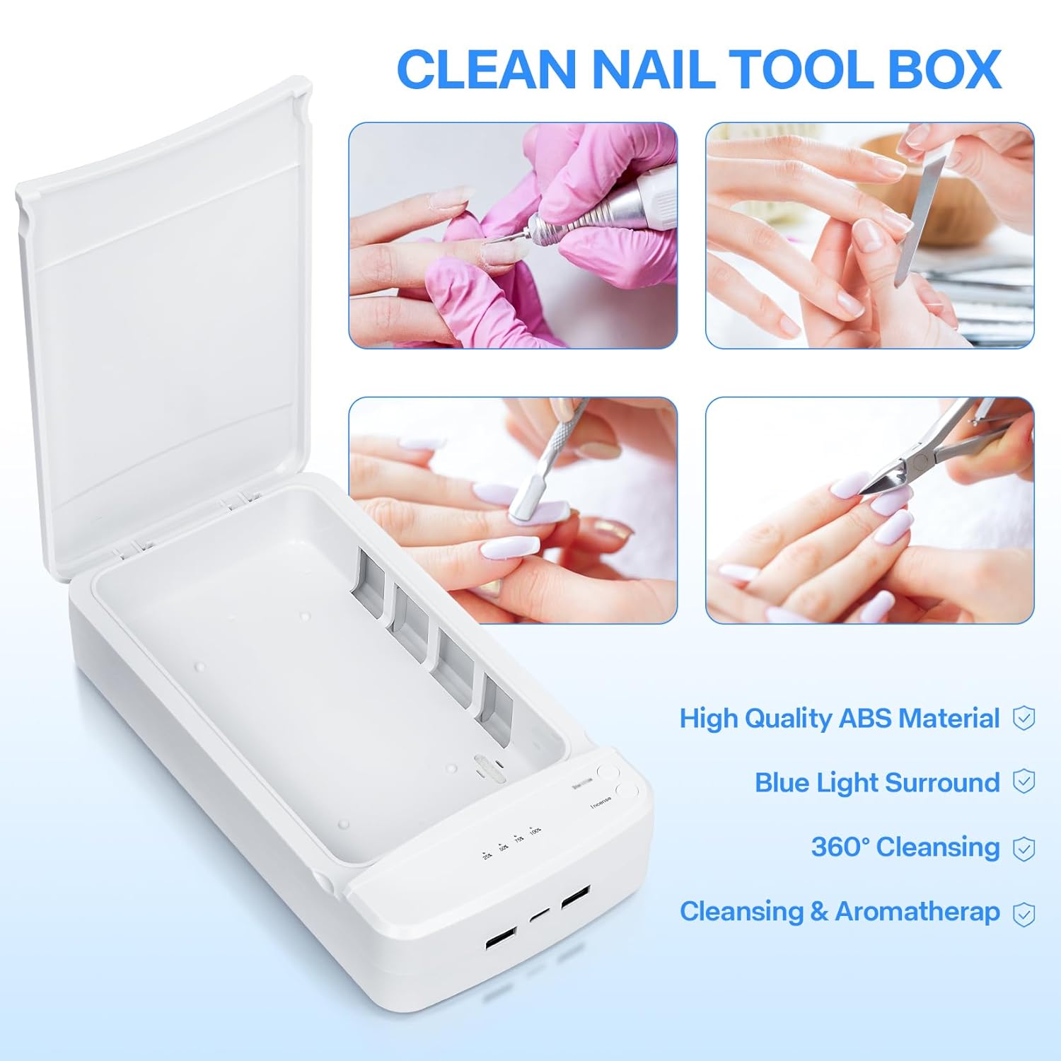 Nail Tool Sterilizer with Blue Light,LXIANGN Portable USB Sterilizating Box for Manicure Salon,Tweezers,Tattoo,Scissors,Jewelry,Phone, Watch,Keys