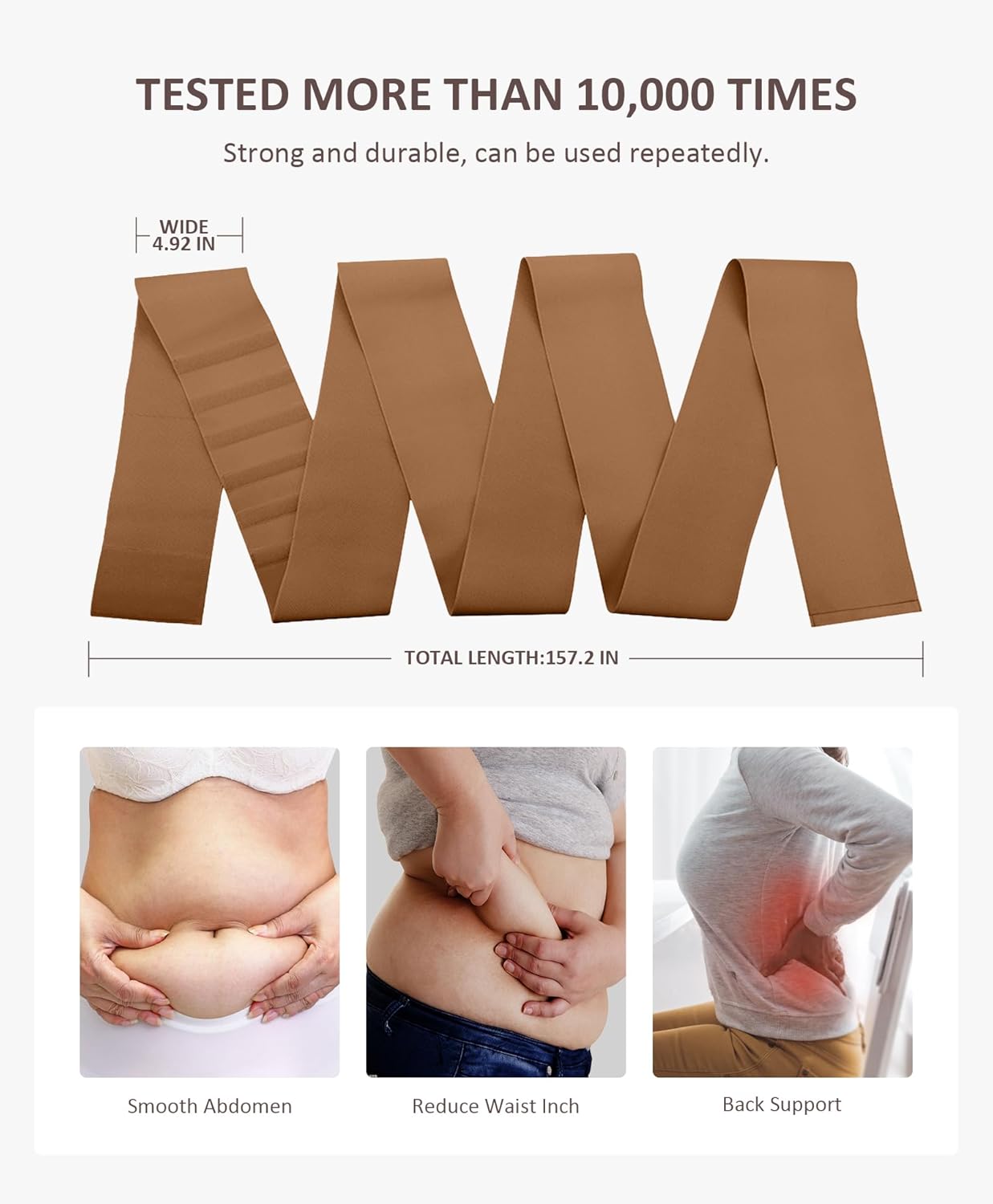 • One Size Fits All: Our waist wrap is designed to accommodate all body types with its one-size-fits-for all size within 23.5 IN-47.5 IN waistline. Measuring 157.2 IN in length and 4.92 IN in width, this bandage wrap offers versatility in snatching your waist, allowing you to adjust the tightness to your preference to your preference for ultimate comfort. Warm tips-Thinner women need to wrap more circles, will appear thick, full-figured women can wrap fewer laps and also have tummy coutrol.