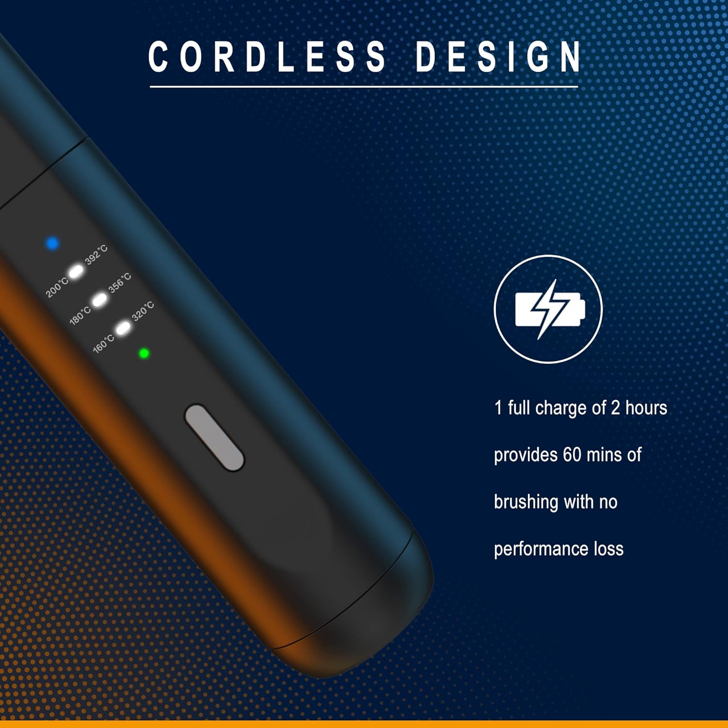 - π[CORDLESS BEARD TOOL]: The massive 4000mAh battery delivers up to 30 minutes of continuous straightening power and taking about 3 hours to charge at the very first time ONLY with 5V/2A Adapter!