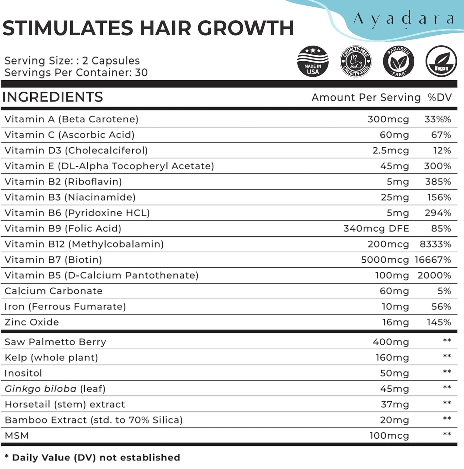 - Comprehensive Beauty Support: Elevate your beauty routine with Ayadara Hair, Skin, and Nails Vitamins, a holistic formula that promotes lusher, stronger hair, radiant skin, and healthier nails from within.