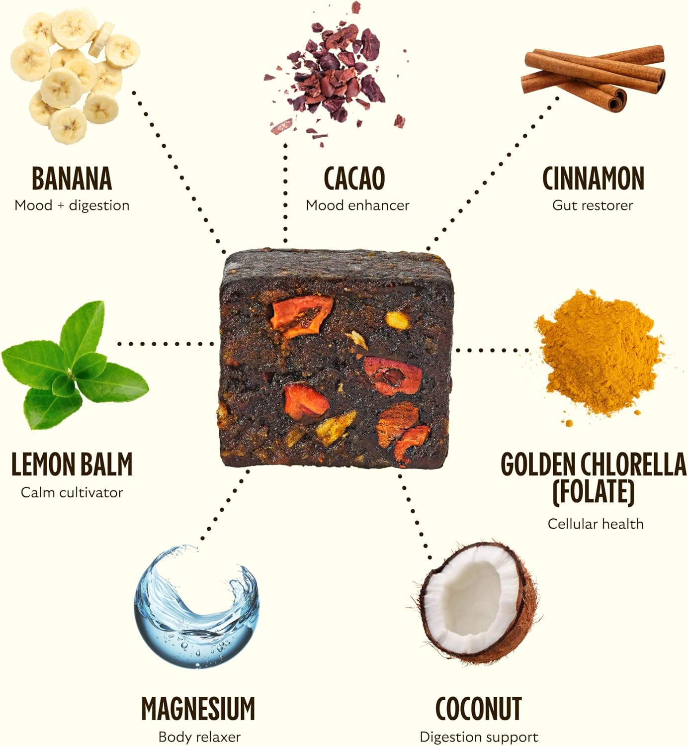 - Boost: Lemon balm and golden chlorella relieve stress, promote focus, and reduce brain fog. One delicious real food Bite filled with 50% of your daily dose of magnesium. Three different forms of magnesium targeting brain, body, and gut for stress, relaxation, and digestive relief. Each bite contains lemon balm with clinical benefits to help with cognition, focus, and mood support.