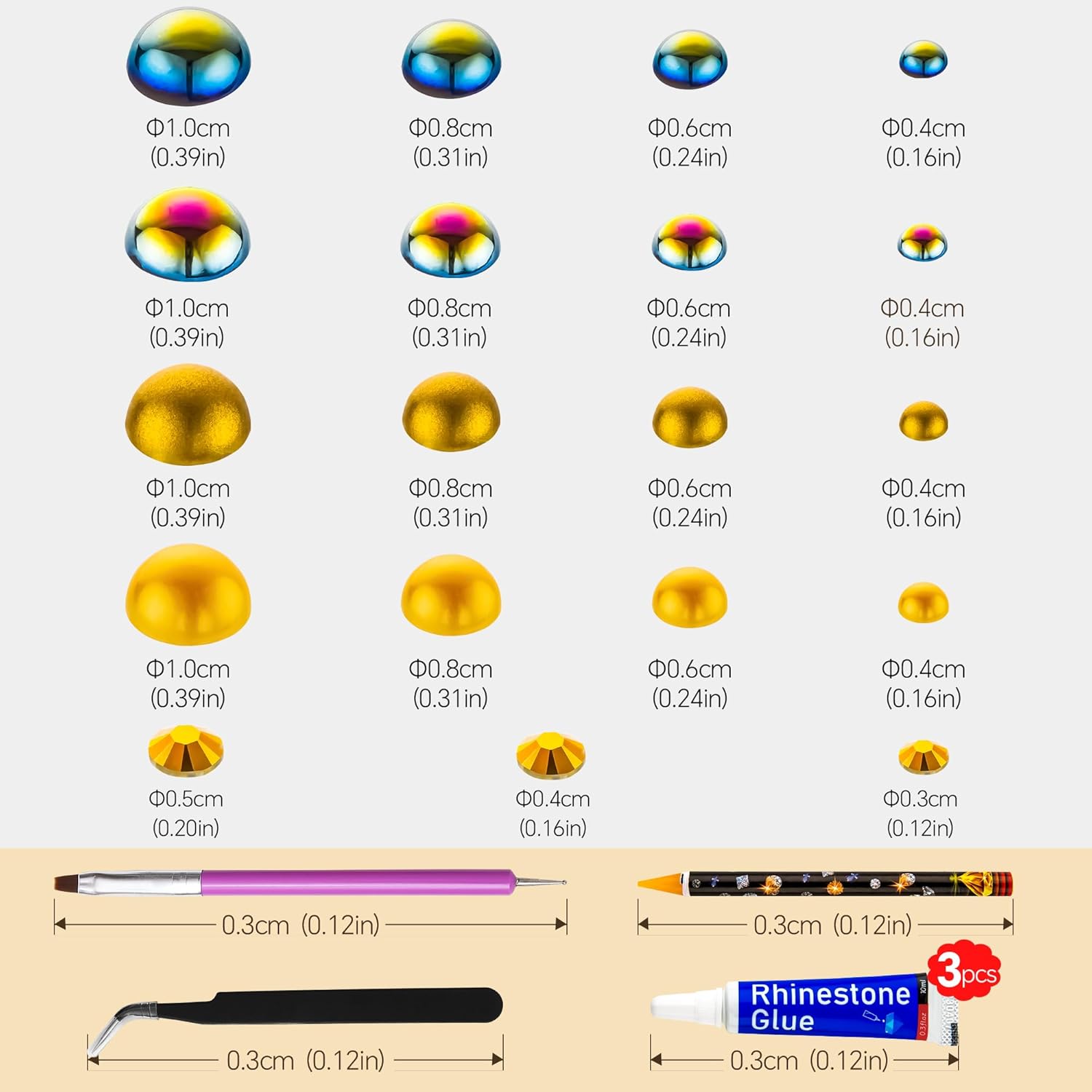 60g Gold Flat Back Pearls Rhinestones for Crafts Mixed Size 3mm-10mm AB Color Round Half Pearls Flatback Pearl Beads and Resin Rhinestones Set for Face Art with Glue