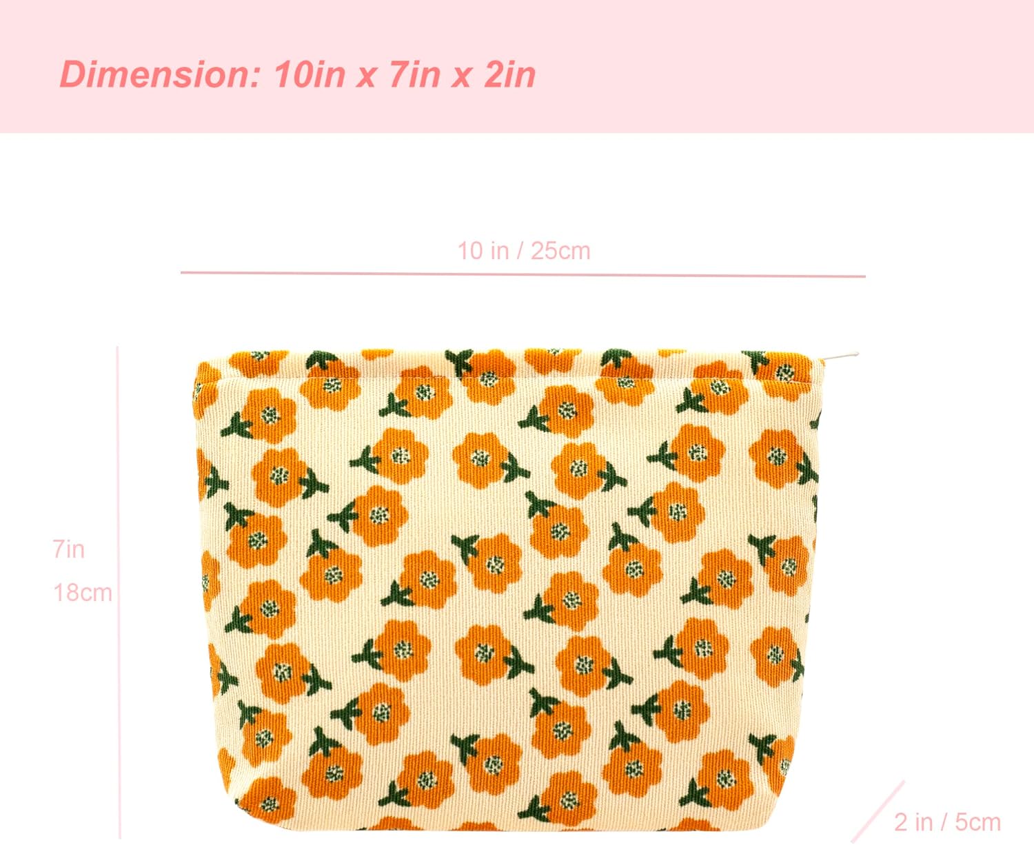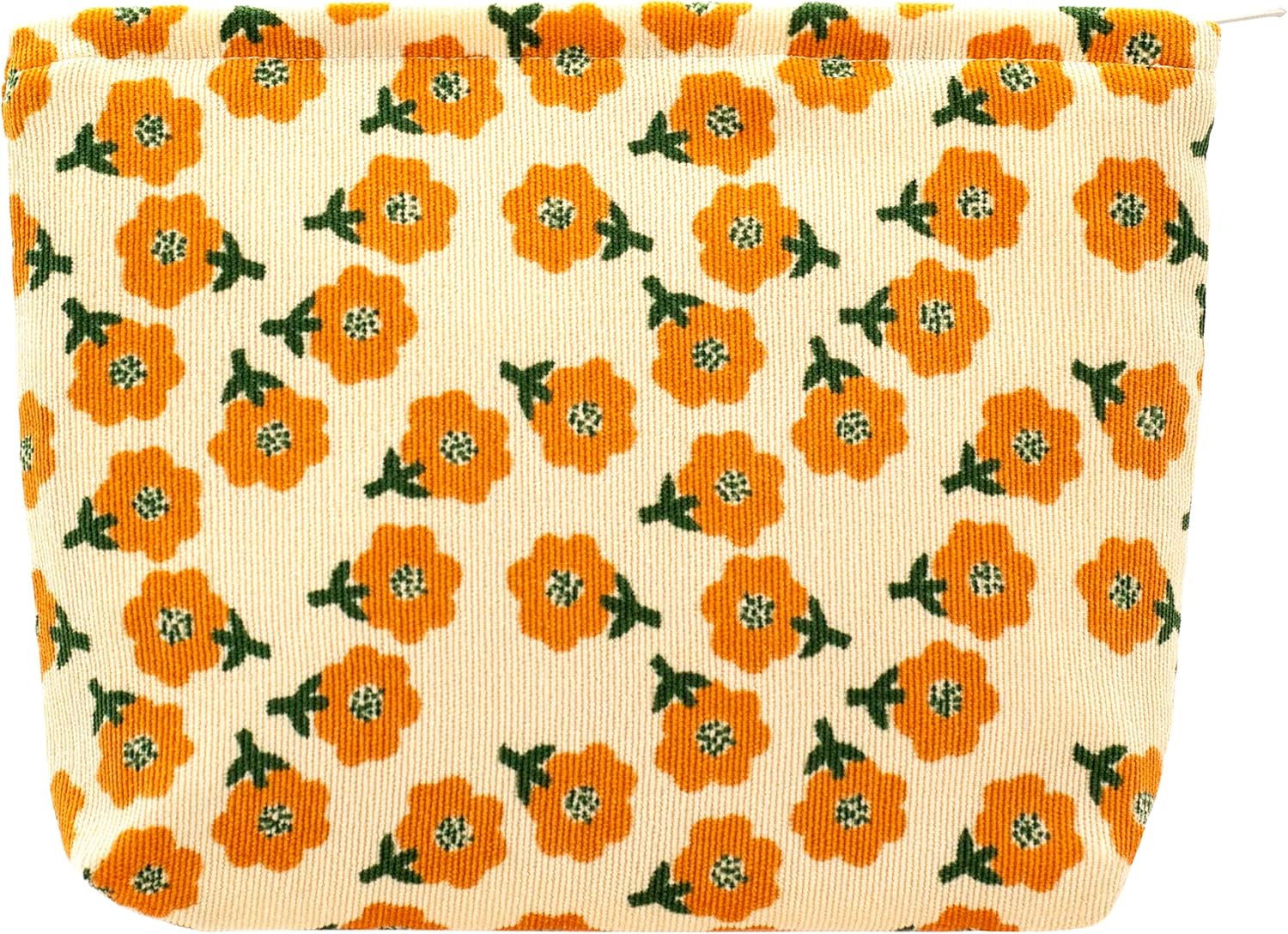 PAZIMIIK Makeup Bag Large Zipper Corduroy Make Up Pouch for Purse Travel Canvas Cosmetic Organizer for Women Brush Storage,Flower Yellow