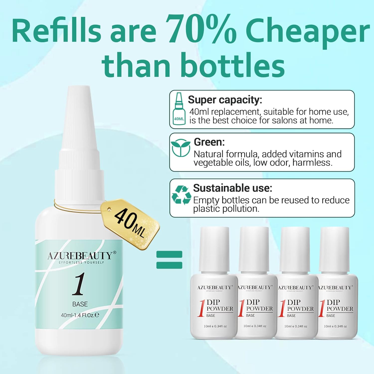 - β Ideal Gifts & Trusted Brands: AZUREBEAUTY nail dip super capacity Base Coat with more advanced and Ideal gift for your sister, mom, and friends. # Note: According to different skin symptoms, it should be tested before use to check if there is any reaction.#