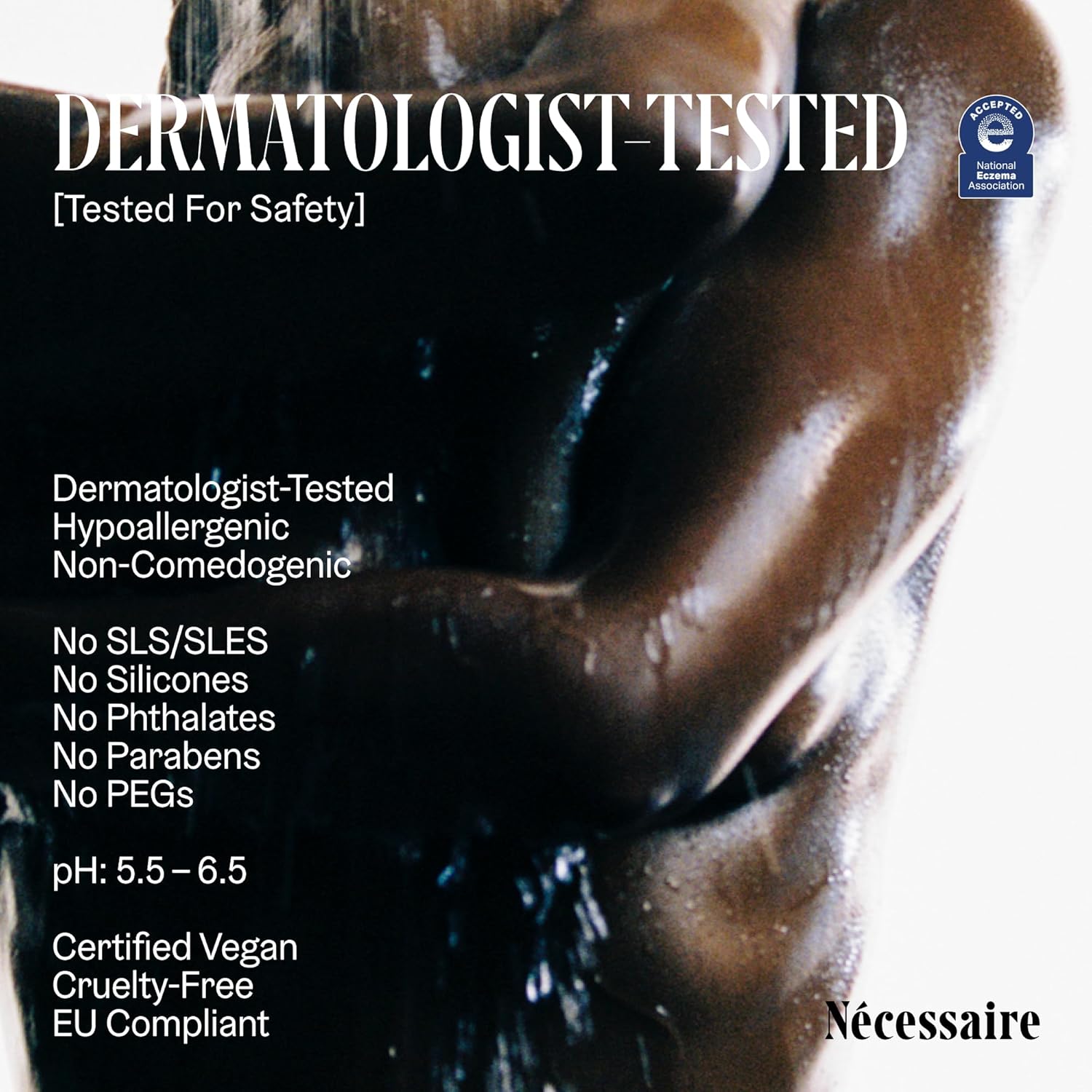 Nécessaire The Body Wash. Fragrance-Free. Multi-Vitamin Gel Cleanser. Nourish, Soften. Hypoallergenic. Dermatologist-Tested. No SLS/SLES. 250 ml / 8.4 fl oz