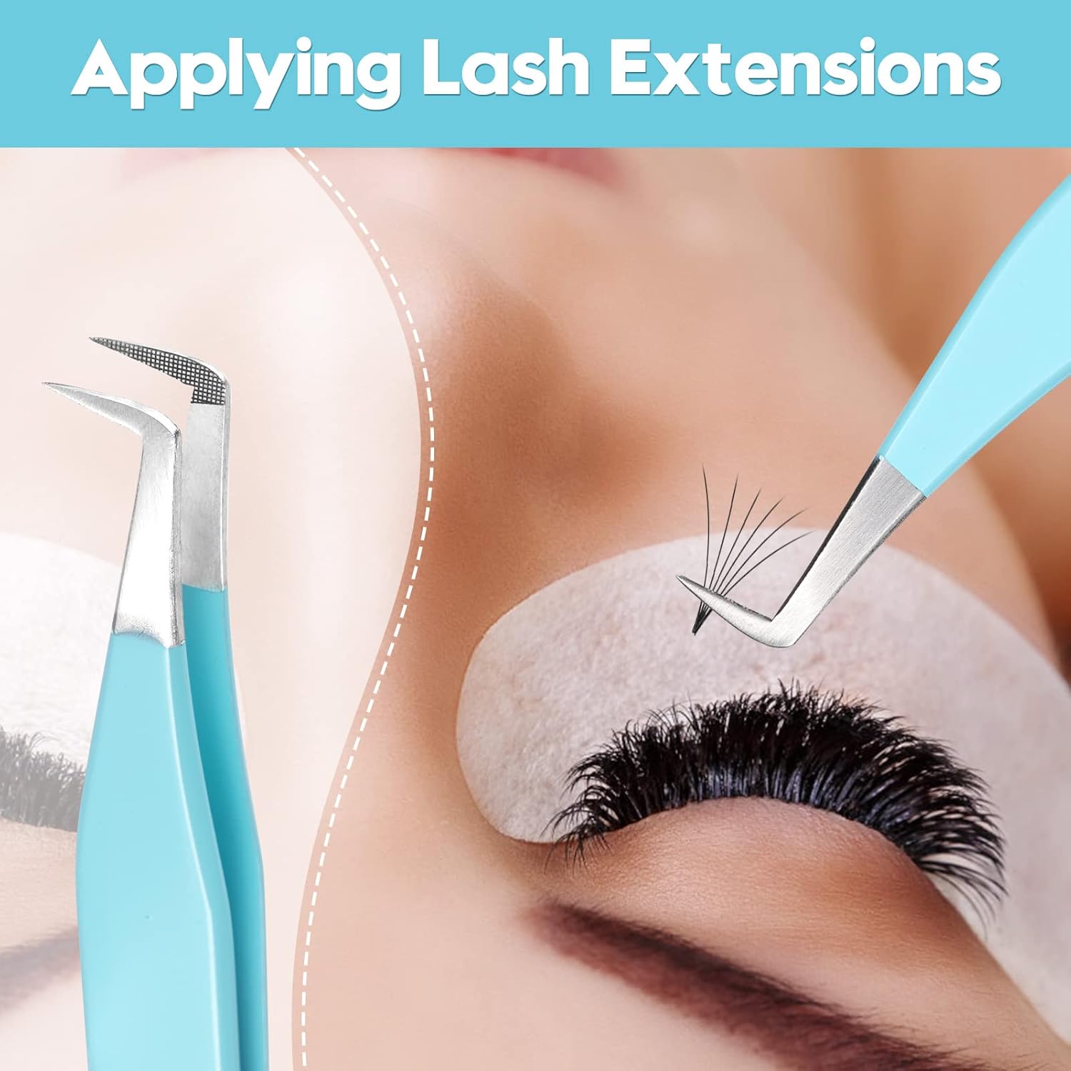 - ★Fiber Tip 90 Degree Boot Tweezers:Specifically designed with a microfiber tip Special microfiber tip—All over sweet spot with an amazing grip, picking up the lashes without falling apart.