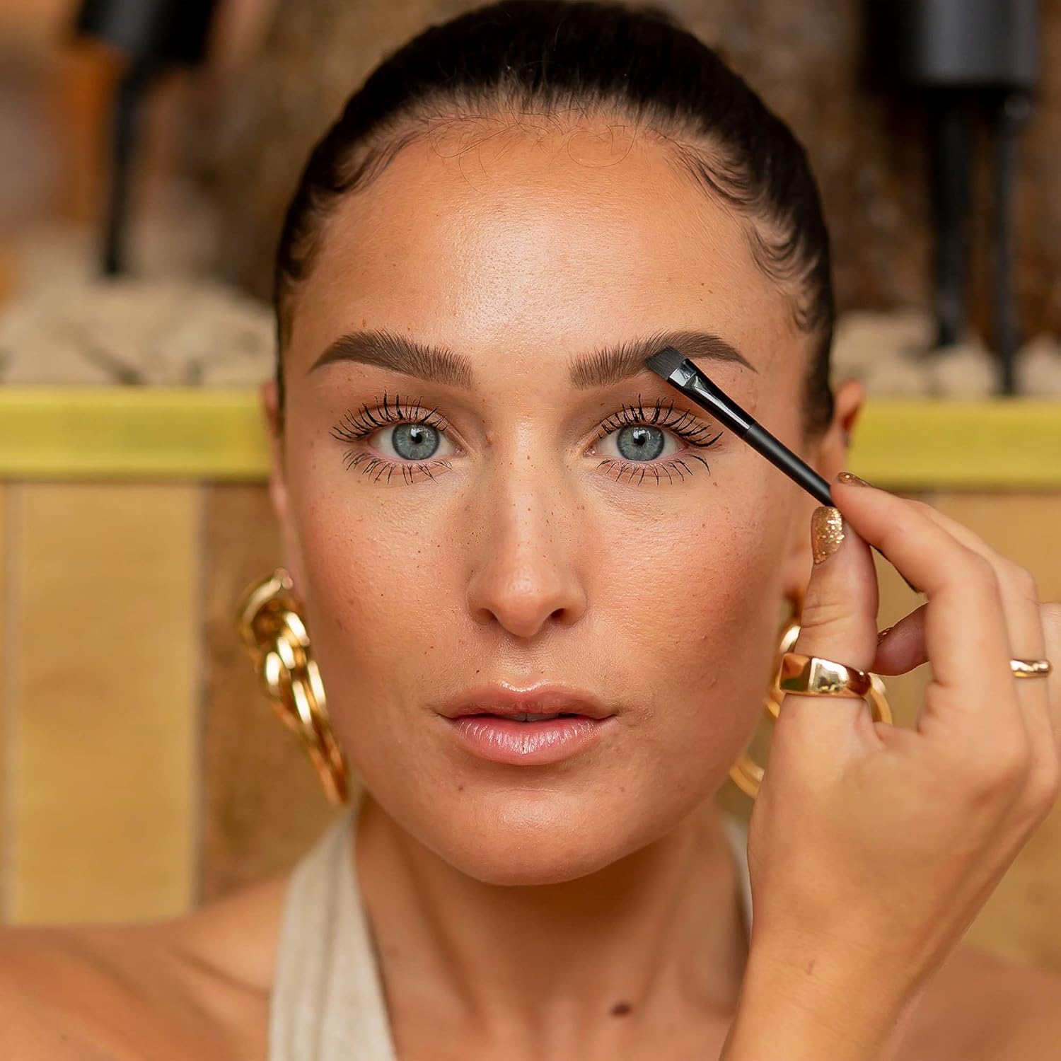 - EASY APPLICATION: Place the stencil on your brows and apply the brow powder using the dual-ended applicator brush in light, feathery forms to accomplish your desired look. Begin with the darker shade and blend in the lighter shade to add dimension. Finish by applying a bit of brow highlighter on the brow bone area.