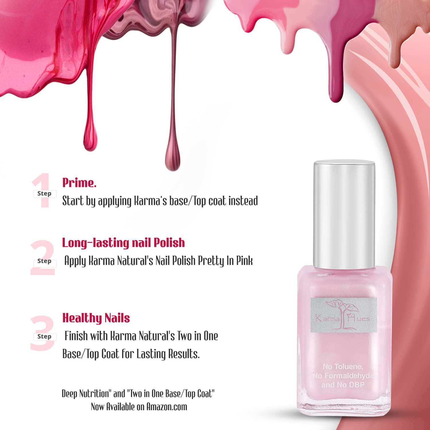 karma organic Natural Nail Polish, Vegan, and Cruelty-Free, No Toluene, No Formaldehyde, No DBP, and Free of TPHP, Pretty in Pink