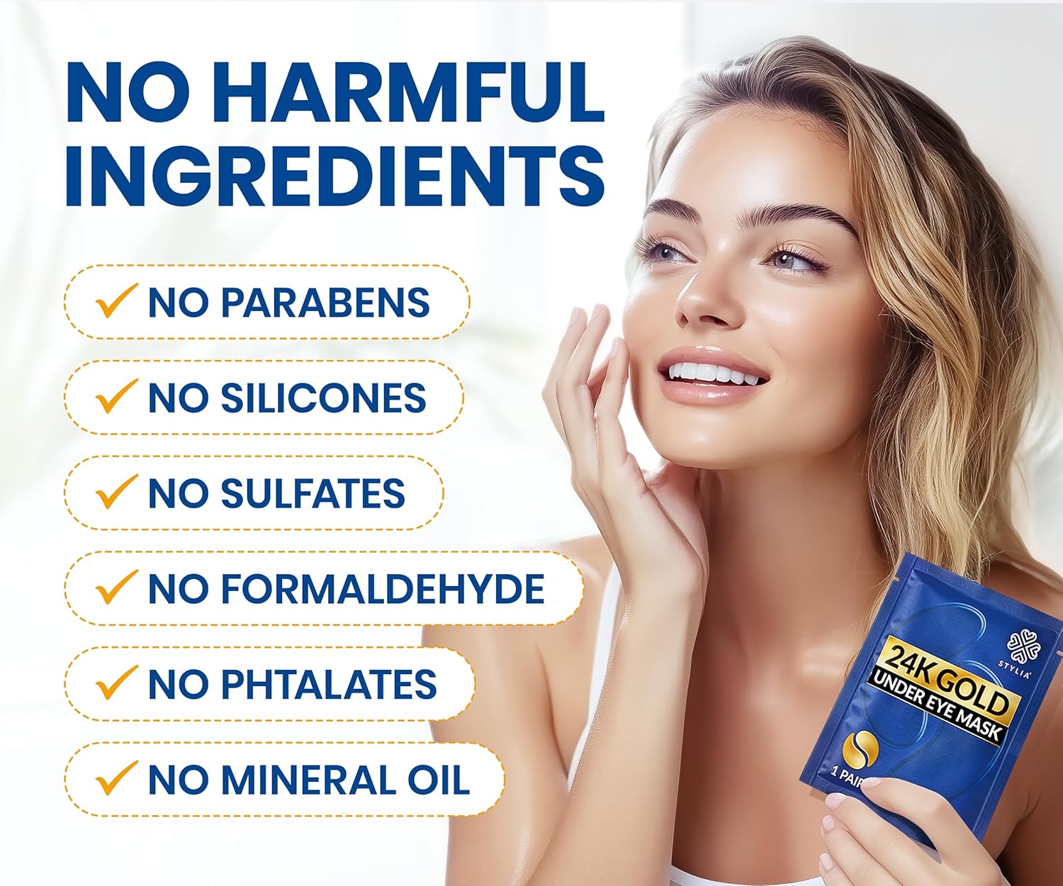 Stylia Under Eye Patches for Puffy Eyes and Dark Circles (30 Pairs) - 24k Gold Under Eye Mask with Vitamin C, Hyaluronic Acid, Pearl Extract - Eye Masks for Dark Circles and Puffiness