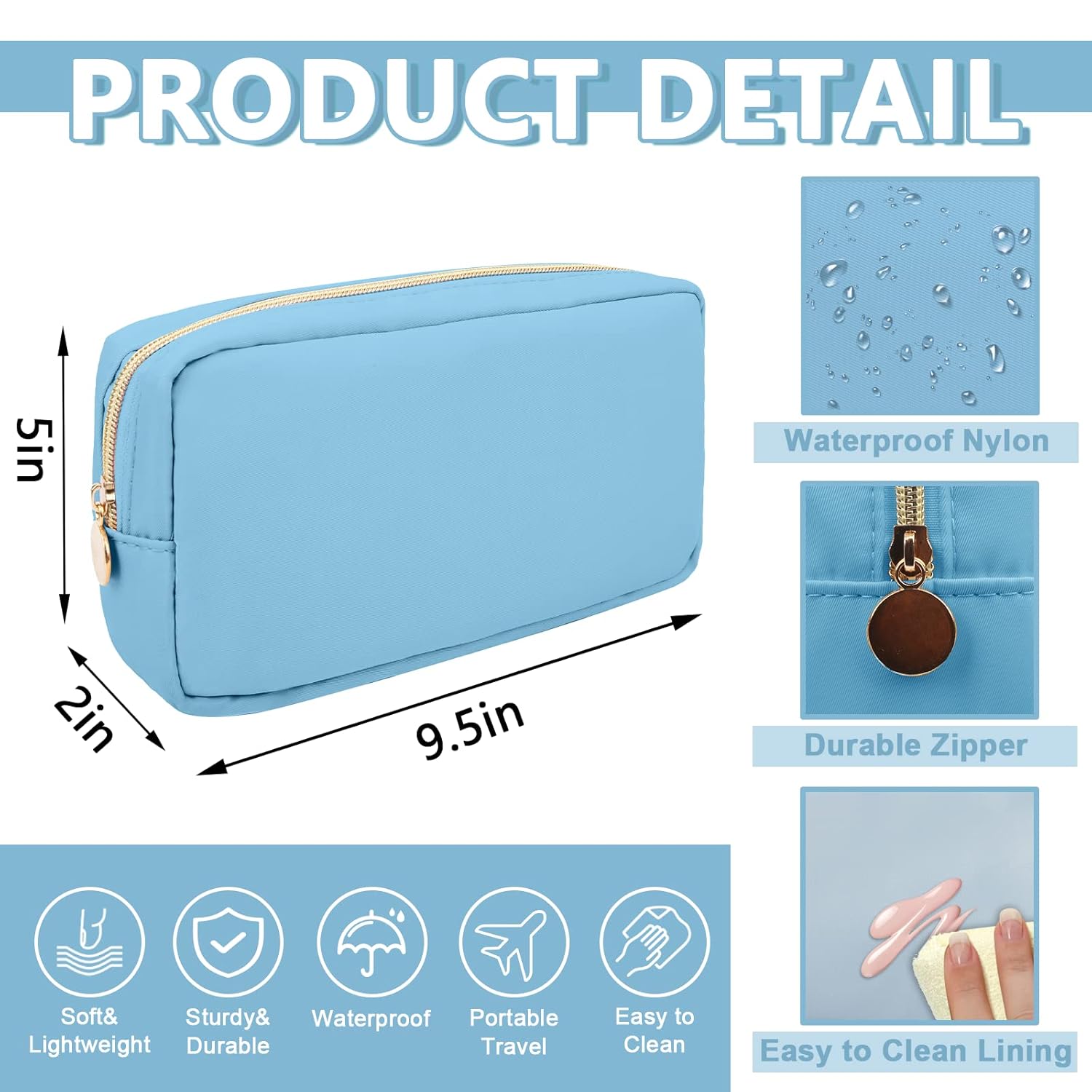 - 【Smooth&Sturdy Zipper】The nylon makeup bag has a metal zipper. The smooth and sturdy zipper is perfect for storing your daily essentials and preventing items from falling out of the bag.The smooth and sturdy zipper zipper allows you to have a good sense of use.