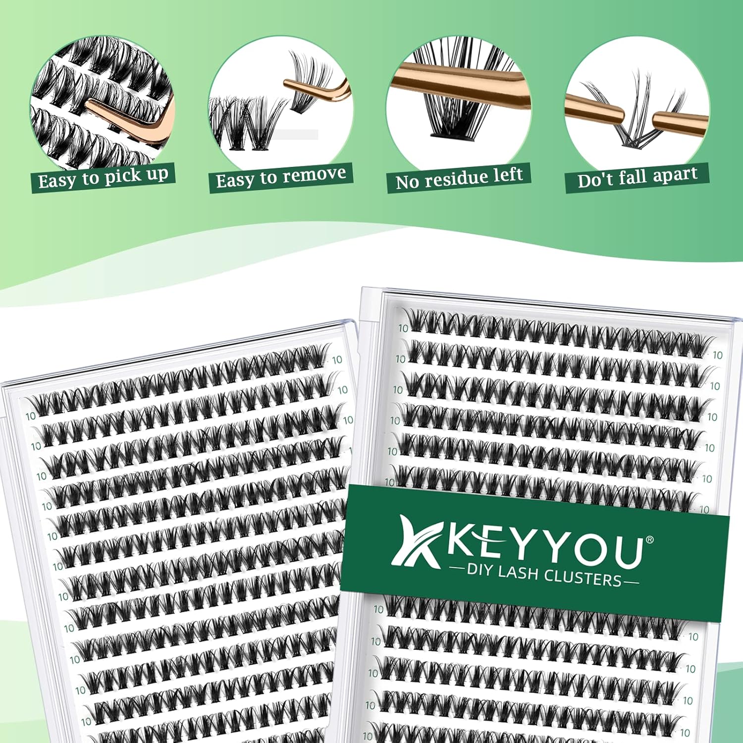- Soft&Comfortable:KEYYOU lash clusters are made of high-quality imported materials which is super soft,lightweight and more comfortable to wear.300pcs in one tray, contains lashes of different lengths to better meet your needs and save time and money.