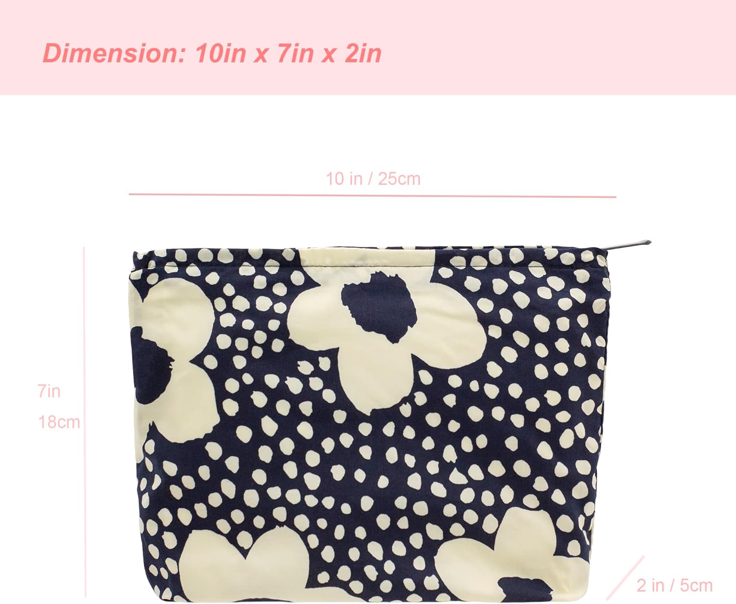 PAZIMIIK Floral Makeup Bag Large Cotton Zipper Pouch for Purse Travel Canvas Make Up Organizer for Women Cosmetic,Floral Navy Blue