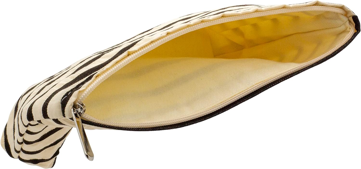 PAZIMIIK Floral Makeup Bag Large Cotton Zipper Pouch for Purse Travel Canvas Make Up Organizer for Women Cosmetic,Stripe White