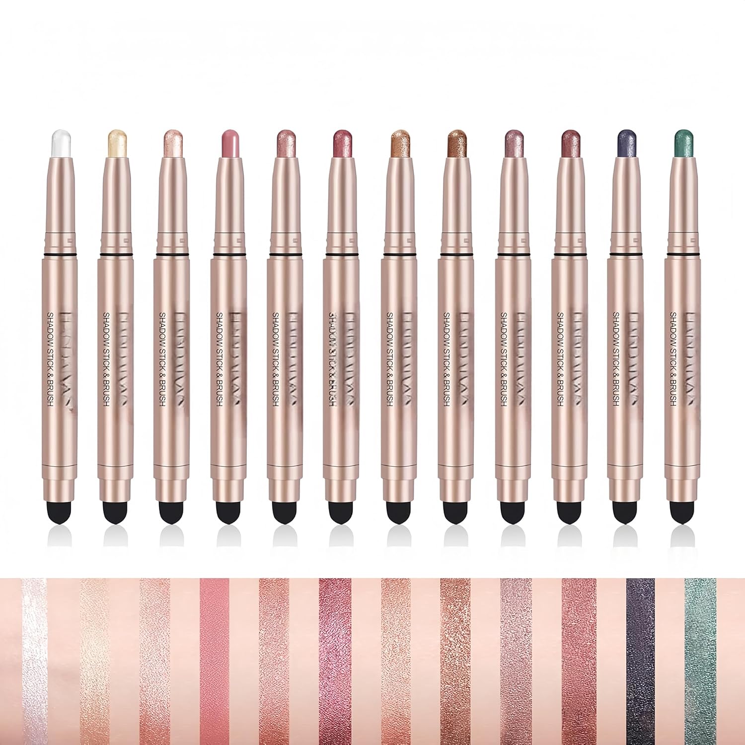 Eyeshadow Stick Set 12 PCS High Pigmented Cream Matte Eyeshadow Pen Waterproof Long Lasting Shimmer Eyeshadows Stick with Soft Brush