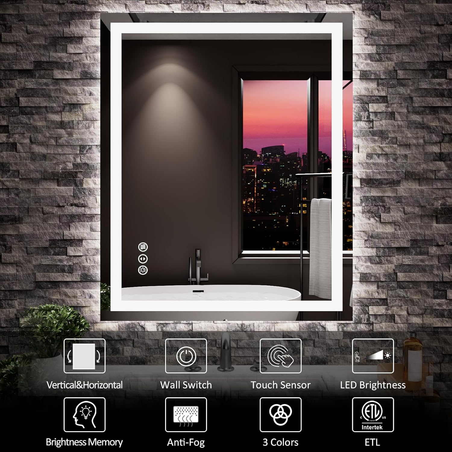 - [Anti-fog]: After a few minutes of opening the defogger, the heater in the mirror will disperse the fog from the center to sides, the mirror will still reflect clearly in the bathroom surrounded by hot air; It will turn on with the power on and automatically turns off after 1 hour