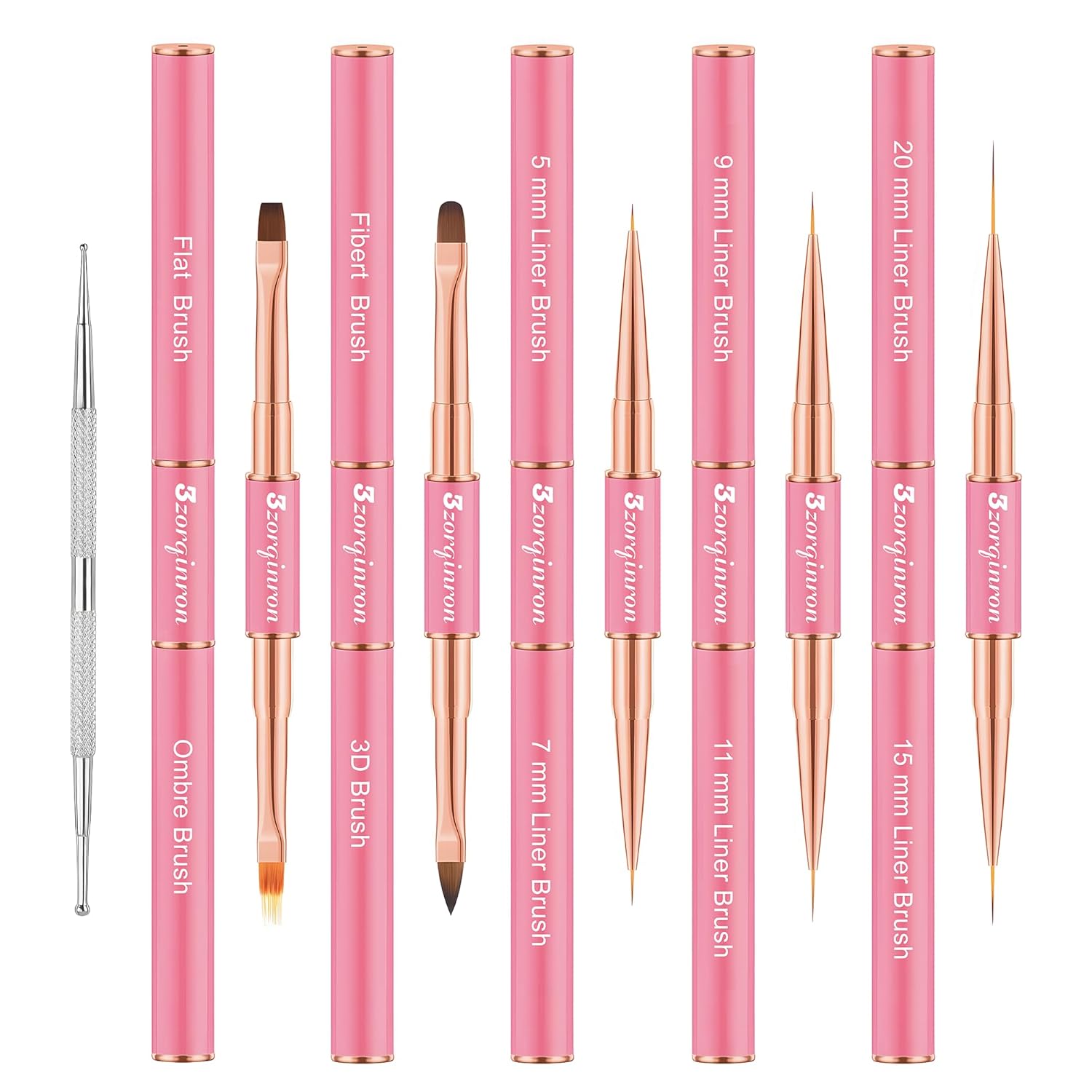 - Versatile Design β Our brushes feature double-heads with 10 different brush heads to choose from, including liner and detail brushes, flat and ombre brushes, a Filbert brush, and a 3D brush, giving you the freedom to create any design you like. Whether you're creating delicate floral patterns or bold abstract designs, these brushes will deliver outstanding results.