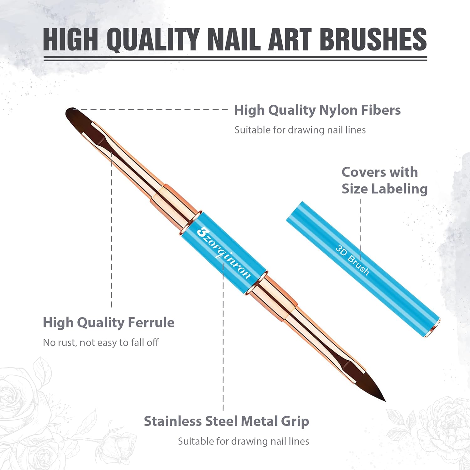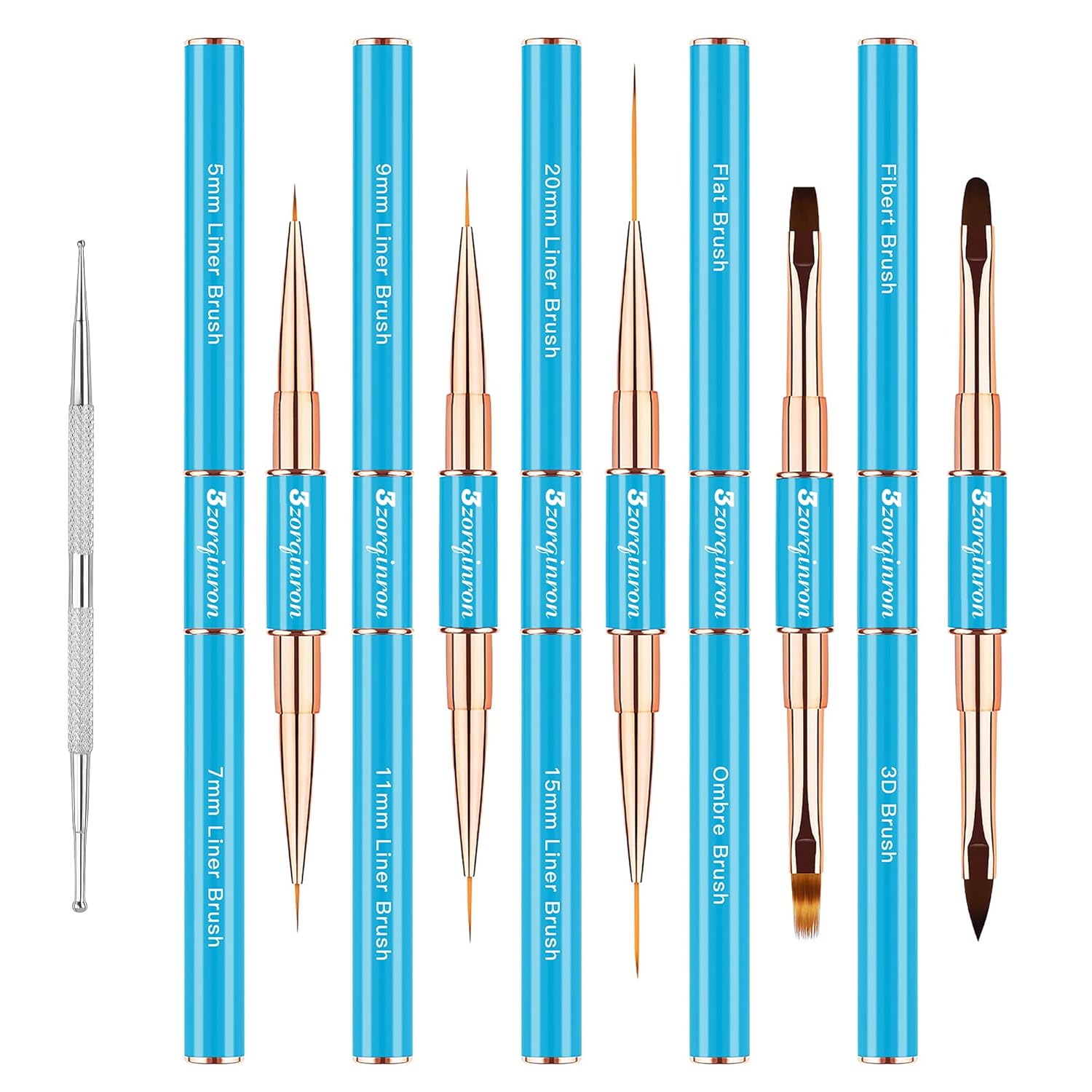 - Versatile Design β Our brushes feature double-heads with 10 different brush heads to choose from, including liner and detail brushes, flat and ombre brushes, a Filbert brush, and a 3D brush, giving you the freedom to create any design you like. Whether you're creating delicate floral patterns or bold abstract designs, these brushes will deliver outstanding results.