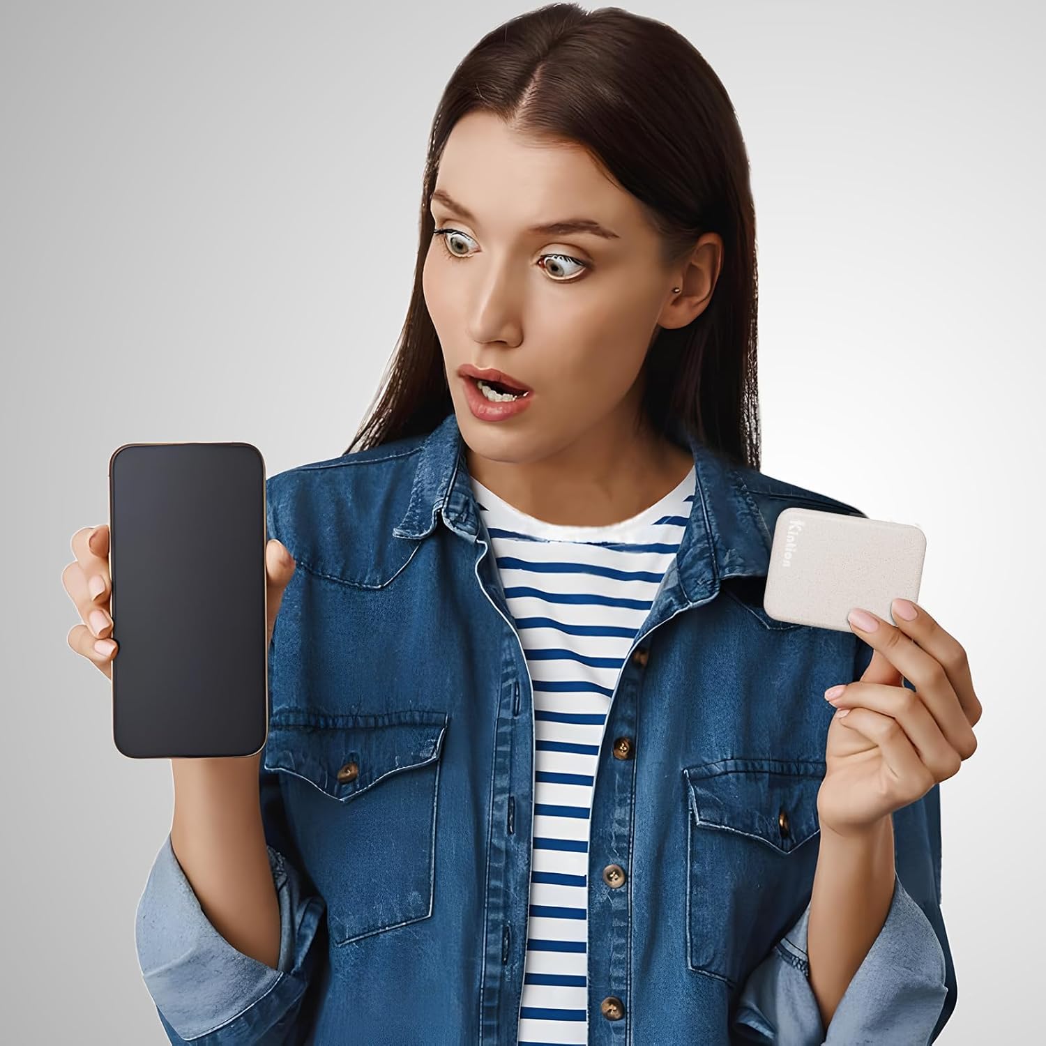 Kintion Rechargeable Pocket Mirror, Wheat Straw Material 1X/3X Magnification Portable Compact Mirror, Handheld Travel Mirror, Small Purse Mirrors for Women, Apricot