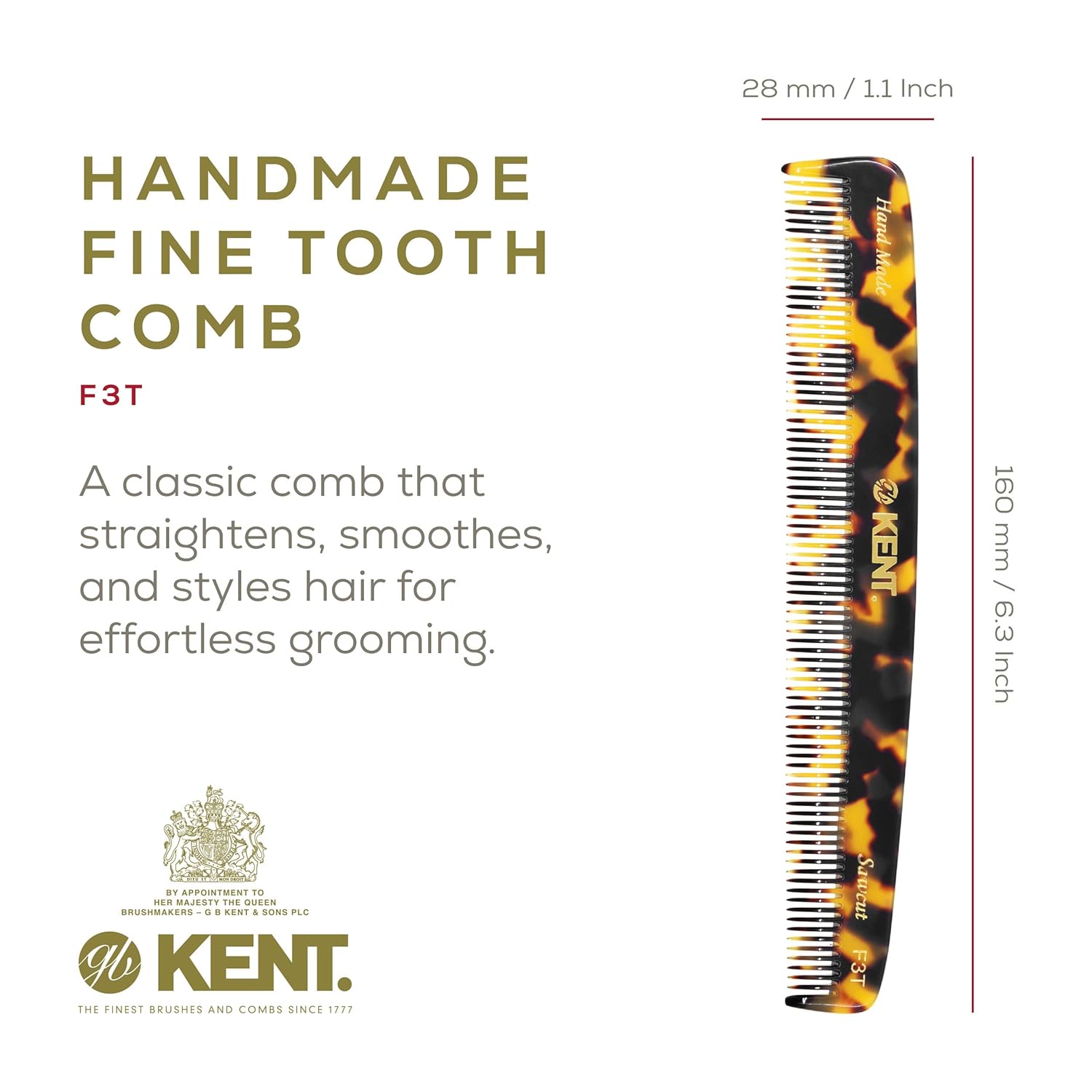 Kent F3TY Fine Tooth Comb - Hair Parting and Straightening Comb for Men's & Women's Dandruff Remover, Saw Cut and Hand Polished Made in England